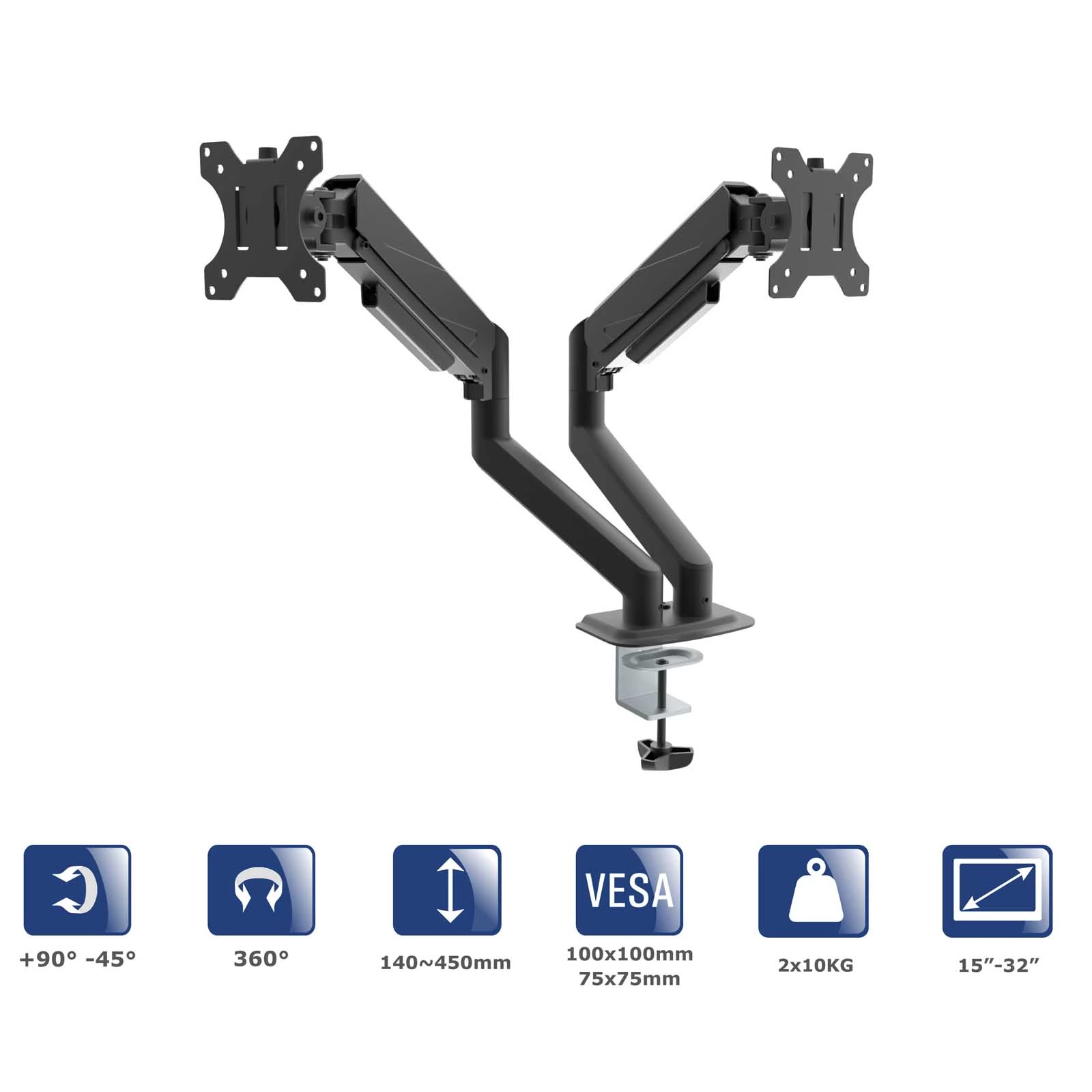 AKYGA AK-MB-06 dual arc cu gaz monitorkar dupla desktop suport 15-32” negru
