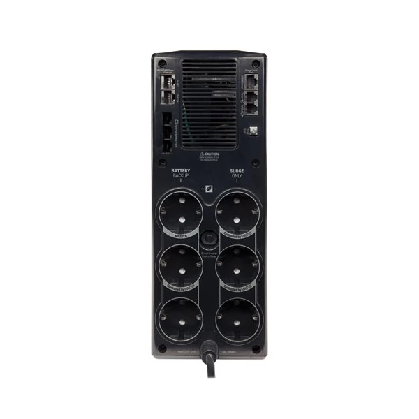 Oprire nesupravegheată: Aceasta garantează backupul fișierelor și oprirea corespunzătoare a sistemului de operare în cazul unei întreruperi de energie prelungită. Protecția Ethernet: protejează hardware -ul împotriva eșecului. Ieșiri suplimentare Ieșiri protejate: consumabilele de slot de diaginale solo care protejează numai pe tensiunea de creștere tranzitorie protejează echipamentele nesensibile, cum ar fi scanerele și imprimantele, fără a reduce puterea unității sau capacitatea bateriei. Acest lucru ne permite să asigurăm puterea maximă a bateriei a dispozitivelor care sunt cele mai necesare, cum ar fi computerul și monitorul. ON -Site Indicator de eroare a cablului: avertizează imediat cu privire la probleme de cablare, cum ar fi împământarea inadecvată, care poate provoca scurtcircuite sau împiedică UPS -ul să controleze în mod corespunzător curentul. (Numai cu 120V unități)