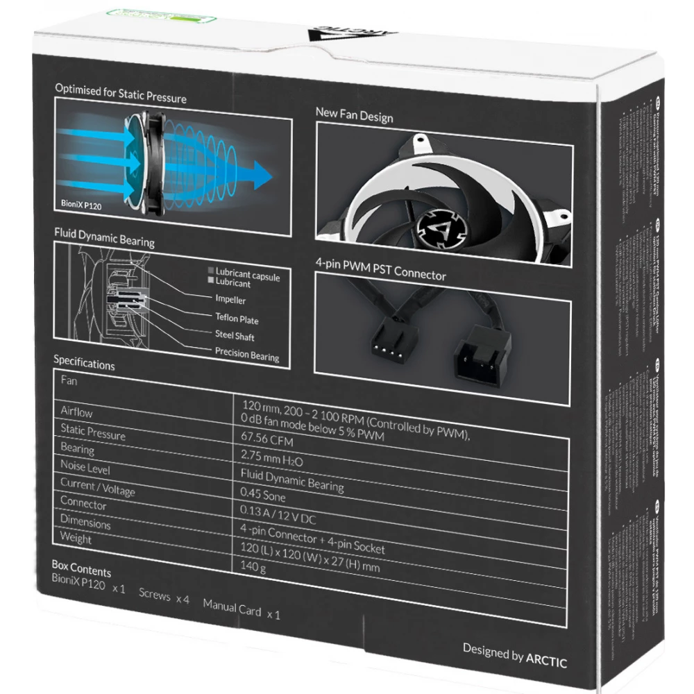 Ventilator de răcire a carcasei gamerului de 12 cm, optimizat pentru presiunea aerului, cu PWM PST (PWM Sharing Technology).
