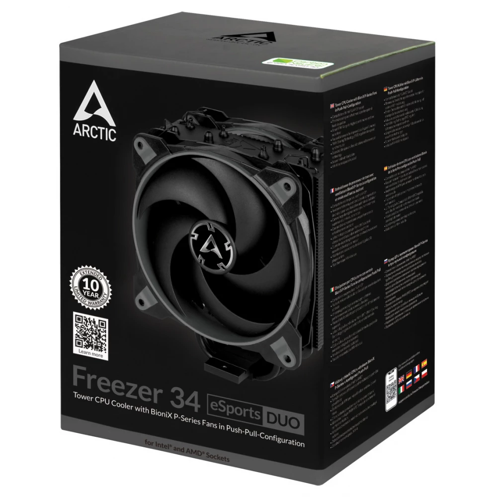 Cu 2 ventilatoare BioniX P puternice, optimizate pentru presiunea aerului și o aripioară de răcire îmbunătățită, Freezer 34 eSports DUO este un cooler CPU cu un raport preț-performanță foarte bun.