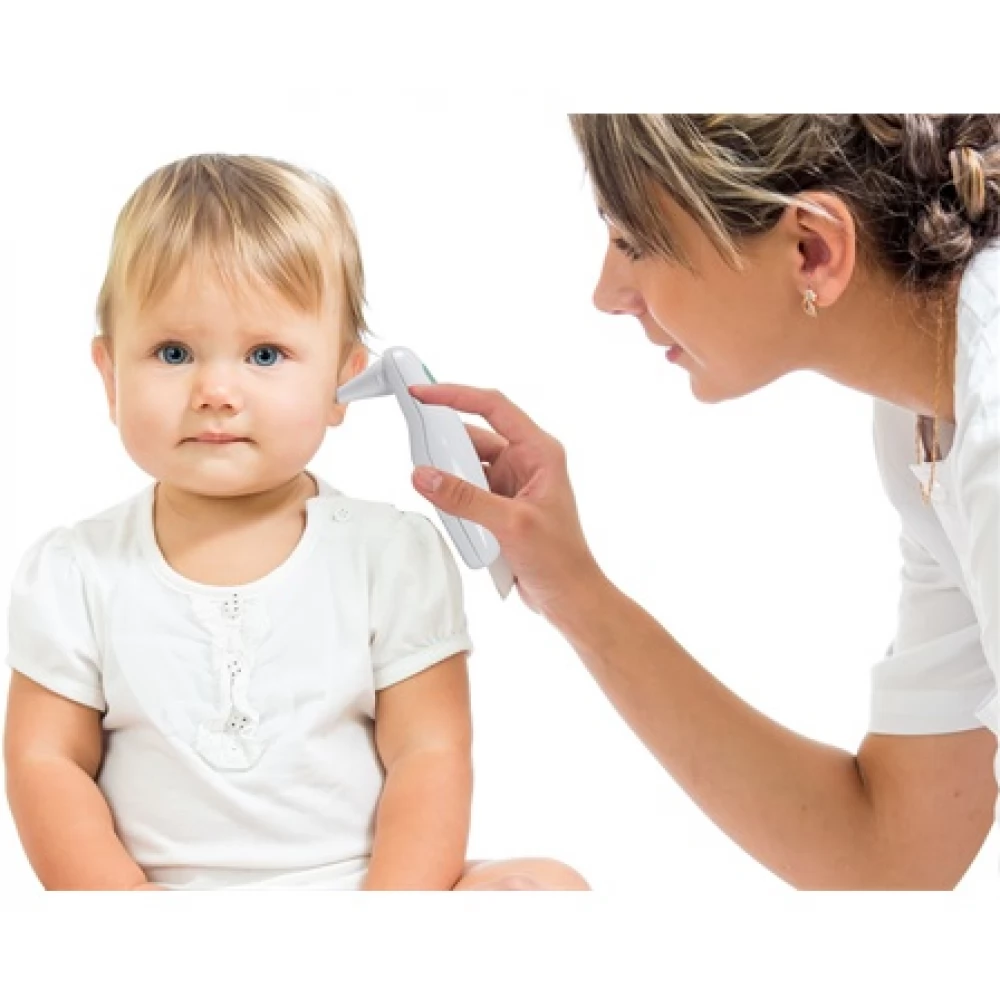 - Datorită infraroșului, acest termometru măsoară de la 32,0 °C la 43,0 °C și puteți alege între °C și °F