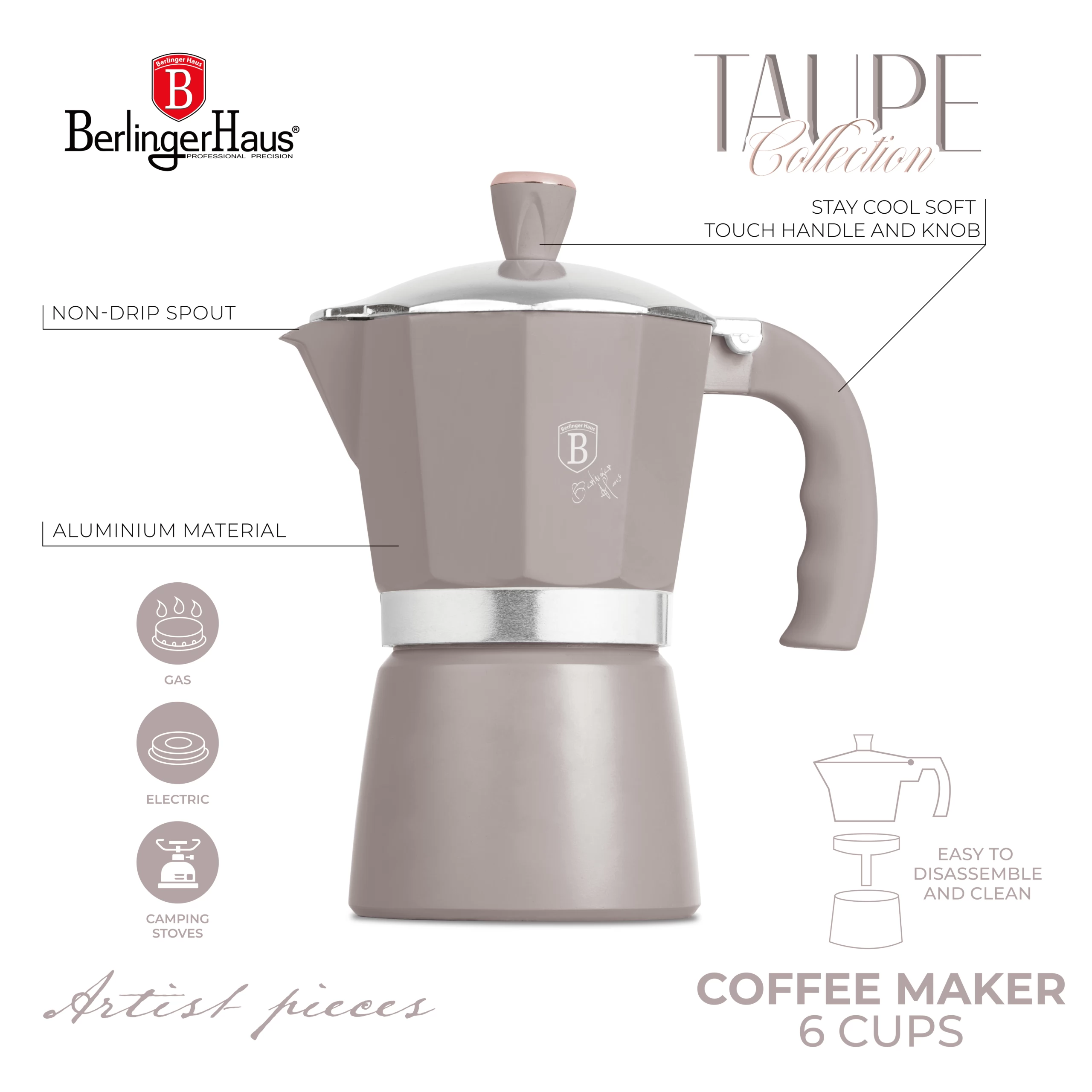 Producătorul de cafea este confecționat din aluminiu, care oferă durabilitate și ușoară. Aluminiul se încălzește repede, astfel încât să poți face cafeaua preferată în cel mai scurt timp.