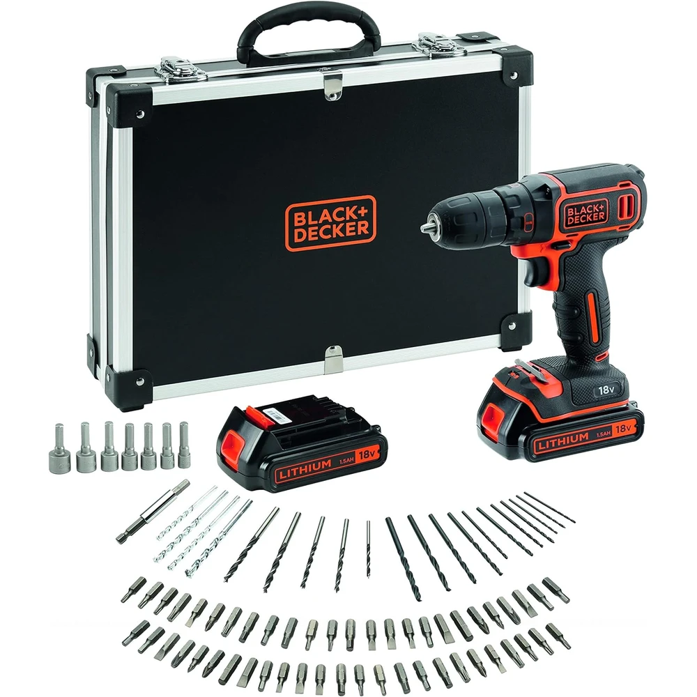BLACK AND DECKER 18V akkus de înșurubat și găurit + 2x1.5Ah akku + 80 accesoriu + valiză BDCDC18BAFC-QW