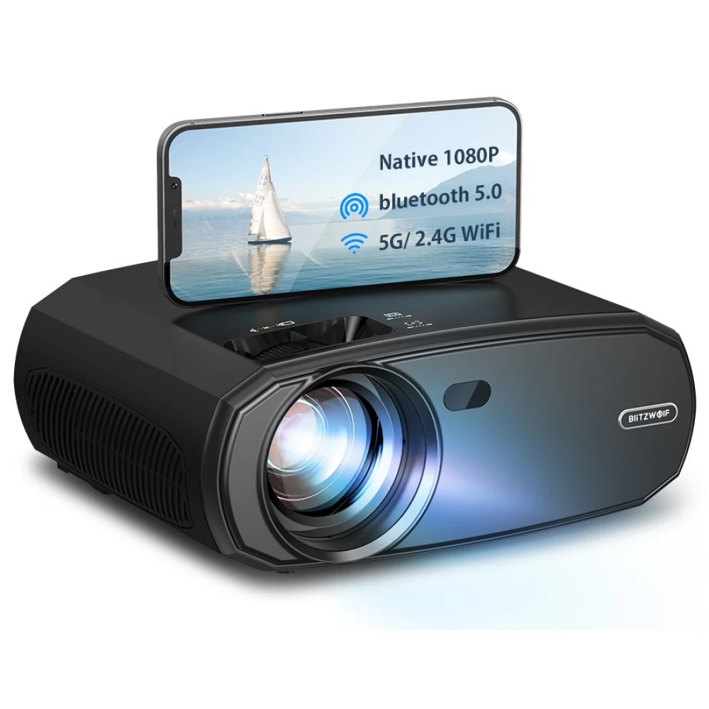 Proiector Blitzwolf BW-VP13 Full HD cu luminozitate de 6000 de lumeni, în principal pentru scopuri de divertisment la domiciliu.