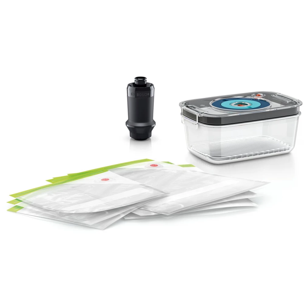 Cutiile de vid stivuibile sunt fabricate din material tritan durabil, fără BPA și sunt rezistente la decolorare și miros. Pot fi folosite la cuptorul cu microunde și sunt ușor de curățat în mașina de spălat vase. Sacii de vacuum durabili și auto-sigilați sunt, de asemenea, fără BPA. Pot fi curățate cu ușurință în mașina de spălat vase și refolosite.
