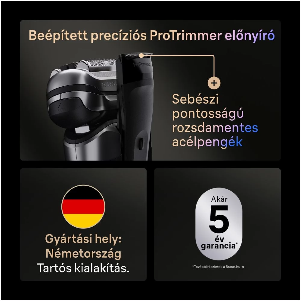 - Protecție excepțională a pielii: Lamele de precizie ultra-subțiri se rad mai eficient decât aparatele de ras electric anterioare din seria 9 și oferă o protecție excepțională a pielii.