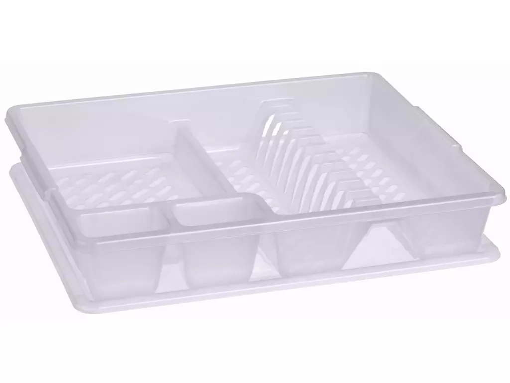 Un uscător de vase clasic care a fost foarte popular de ani de zile. Este fabricat din plastic de înaltă calitate, astfel încât nu își pierde calitatea nici după ani. Dimensiunea este potrivită pentru uscarea mai multor vase și există și un loc pentru un uscător de tacâmuri. Este esențial în fiecare bucătărie.