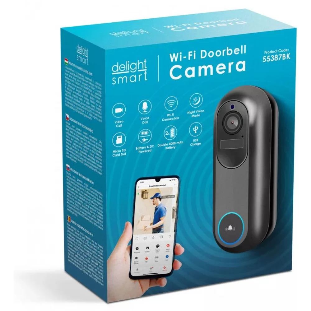 DELIGHT 55387BK Smart Wi-Fi-s video interfon cu acumulator