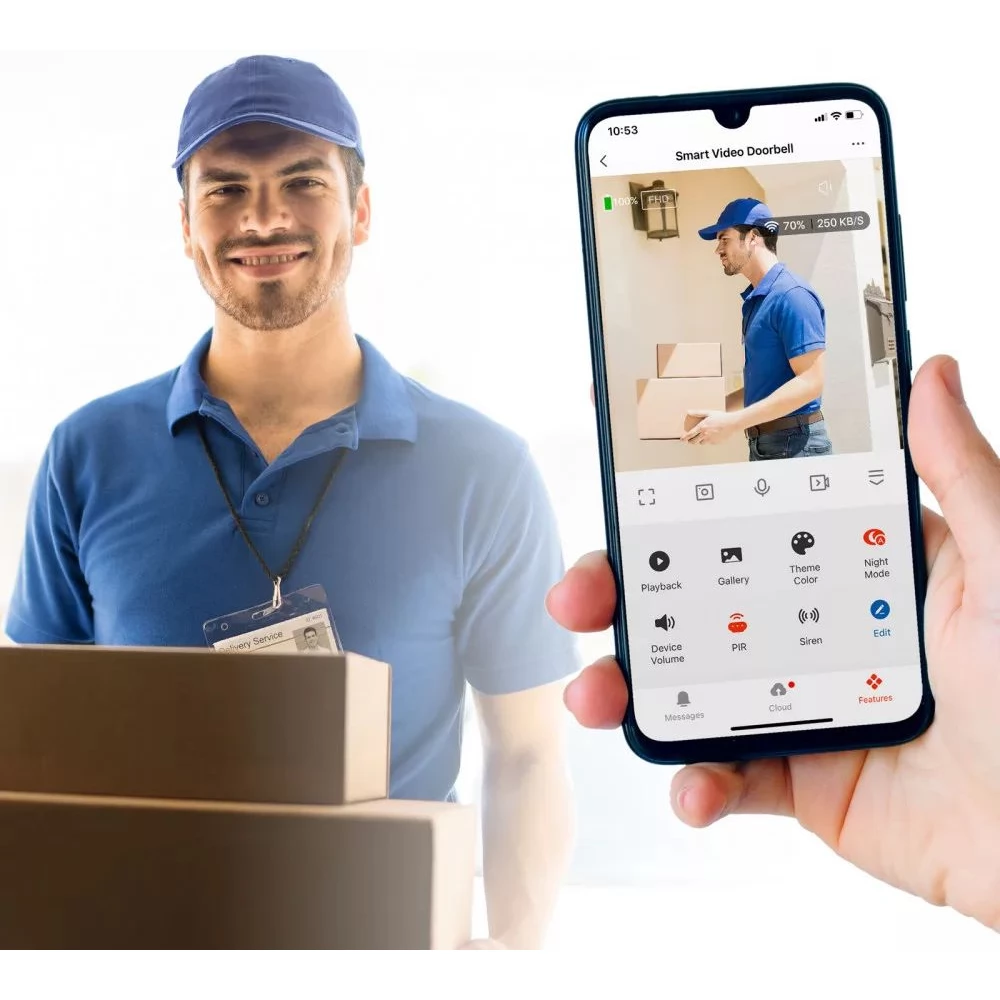 Noua generație de interfoane a sosit. Datorită conexiunii la internet în bandă largă, nu trebuie să fii acasă pentru a vedea cine te-a sunat. Când se apasă soneria, veți primi o notificare pe smartphone și puteți conversa imediat cu persoana care stă în fața ușii sub forma unui apel video. Viziunea de noapte în infraroșu încorporată asigură o vizibilitate clară în întuneric. Un microfon sensibil și un difuzor sunt responsabile pentru comunicarea în două sensuri. Unitatea exterioara are 2 baterii incorporate 21700, astfel ca functionarea interfonului este asigurata chiar si in cazul unei pene de curent. Poate fi folosit cu o sursă de alimentare externă de 12 V și, de asemenea, în modul baterie. Un conector MicroUSB asigură încărcarea rapidă a unității exterioare.