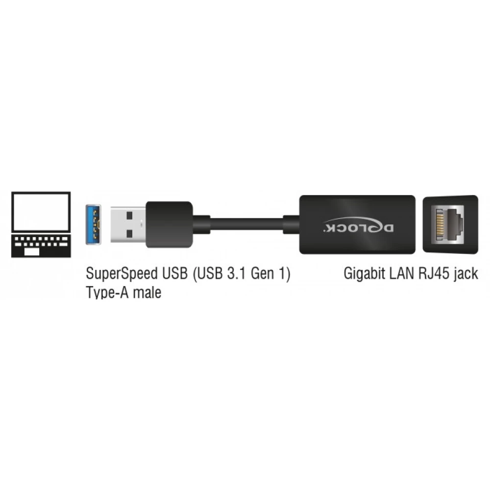 DELOCK 65903 USB 3.1 UTP Convertor 13cm 1Gbps negru