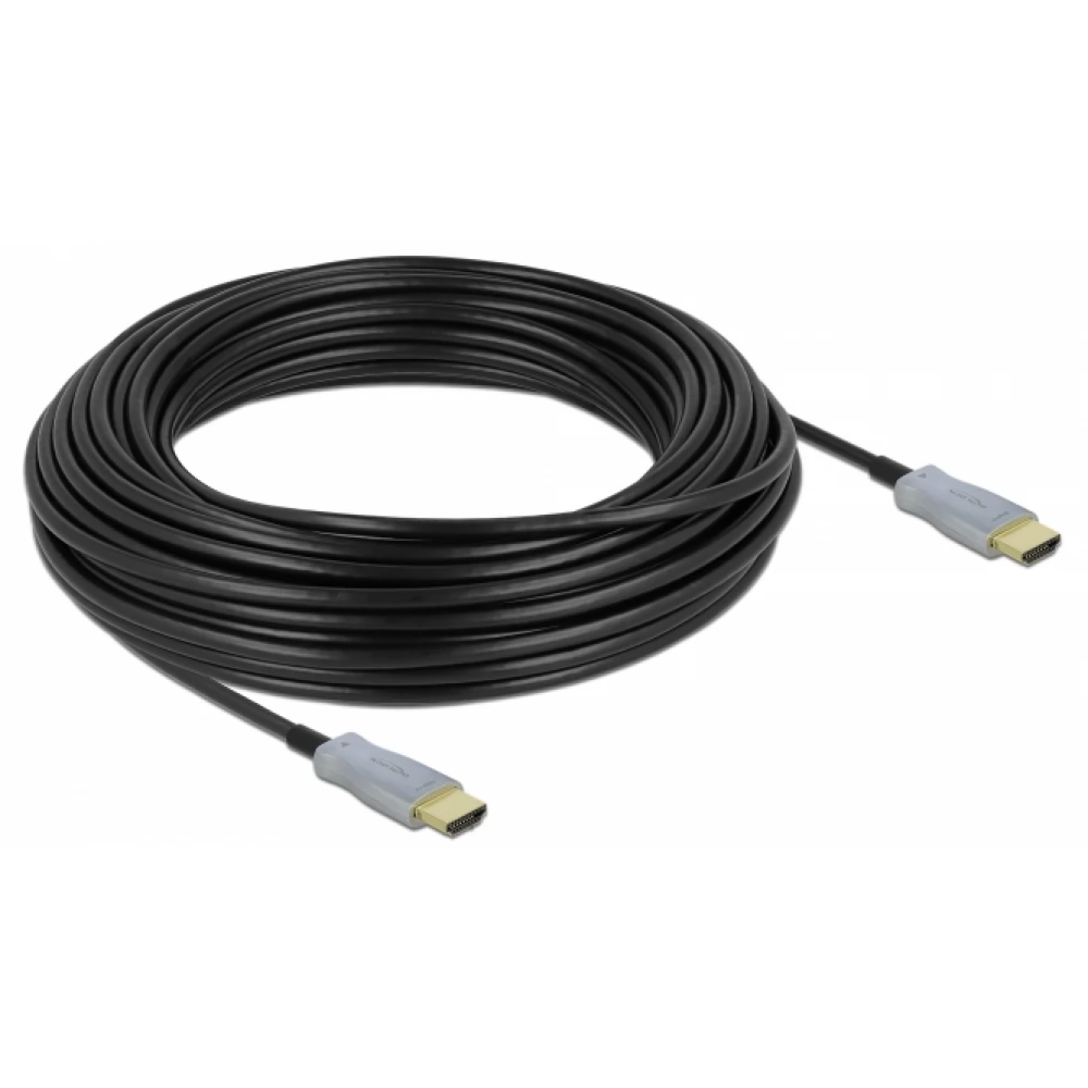 Cu acest cablu Delock, puteți conecta dispozitive cu o interfață HDMI, cum ar fi monitoare sau televizoare, la un computer personal sau laptop. Acest cablu optic activ este deosebit de subțire și poate transmite semnale pe distanțe lungi fără pierderi.
