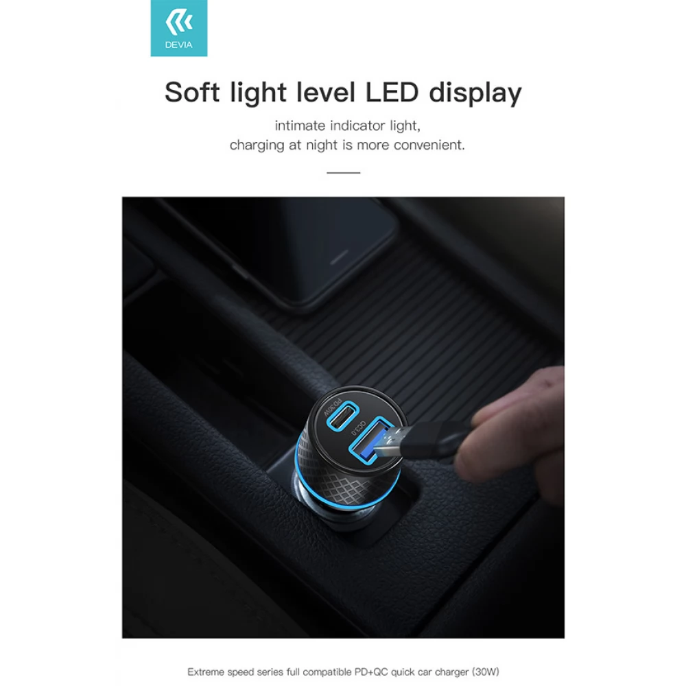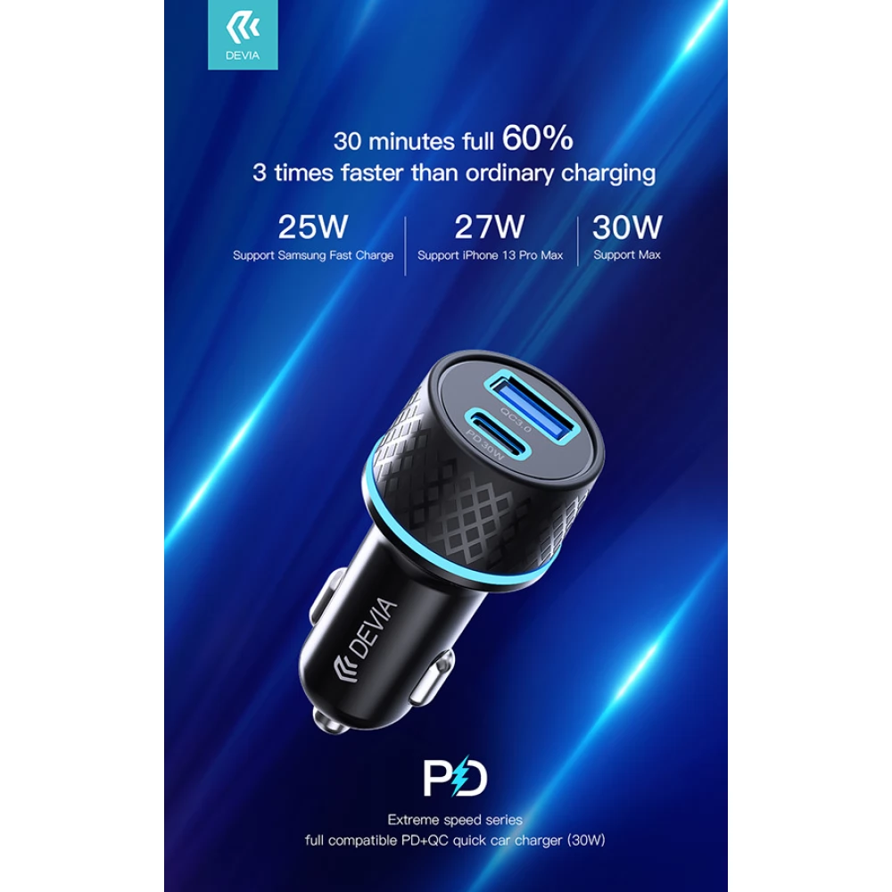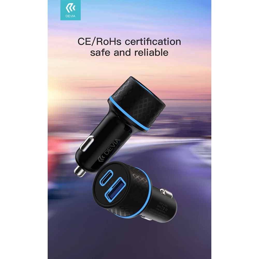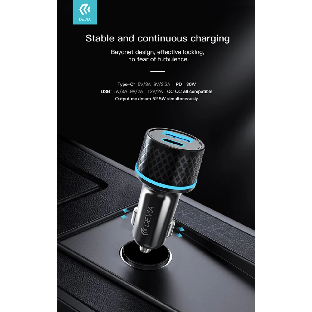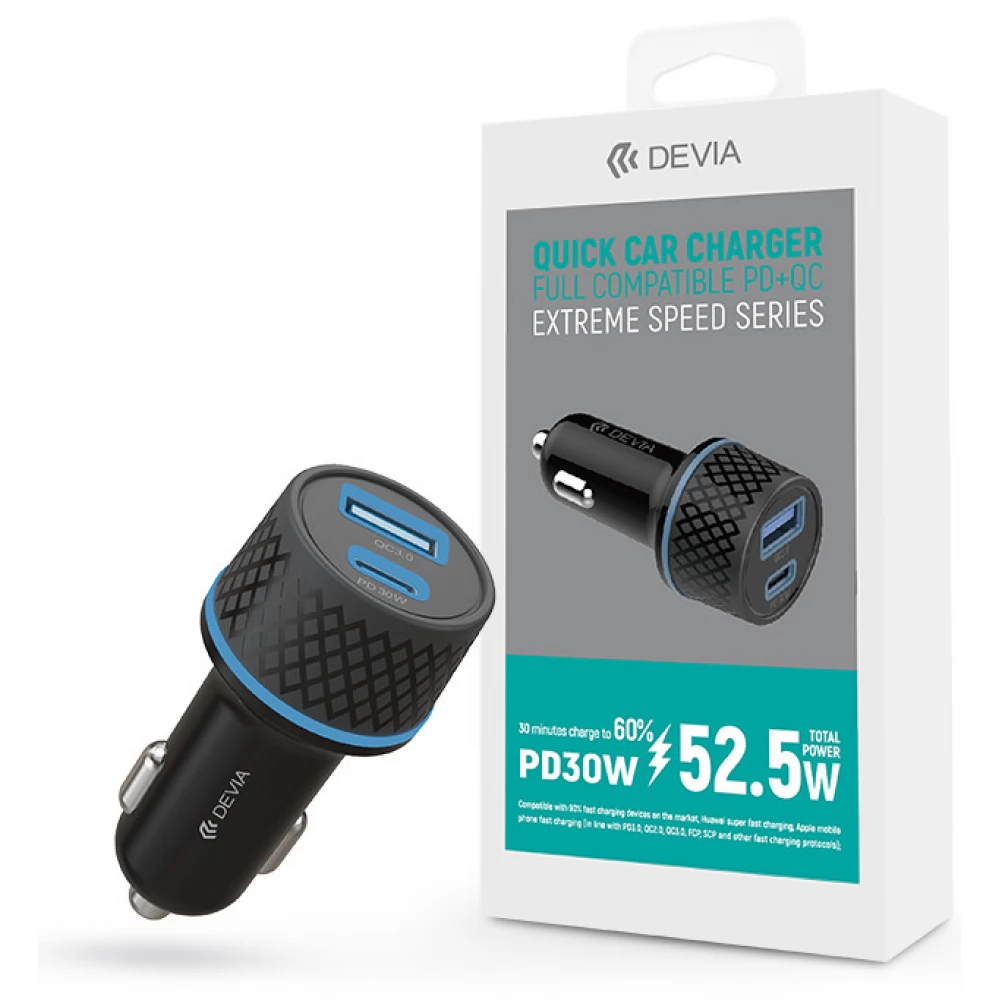 DEVIA Mașină extrem încărcător rapid 1xUSB+ USB-C 52.5W negru