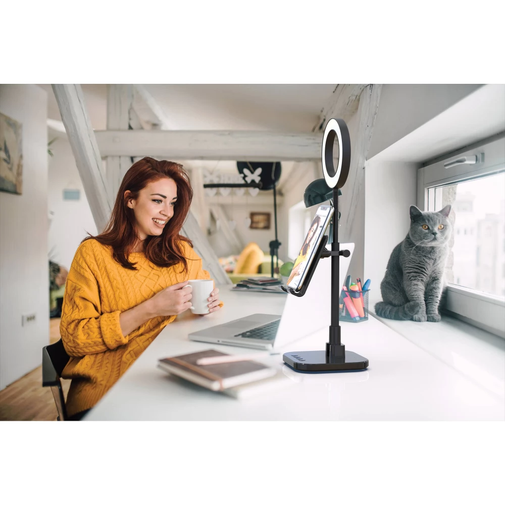 Suport suplimentar portabil și practic pentru telefon și soluție de iluminare pentru crearea de conținut.