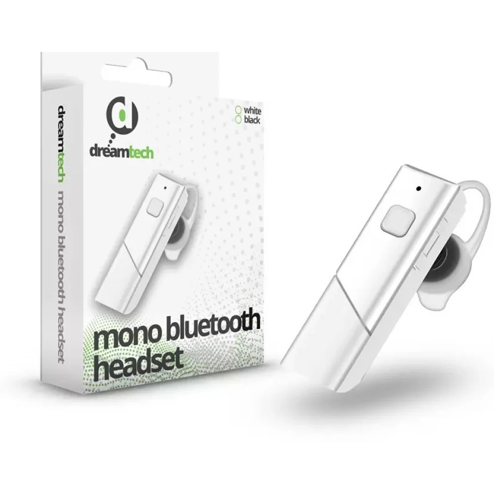 Cască mono Dreamtech pentru negocieri ușoare. Soluție bluetooth unilaterală, încărcare rapidă, rază de acțiune de până la 10 metri. Forma optimă, design se potrivește urechii: utilizare confortabilă, calitate bună a sunetului.