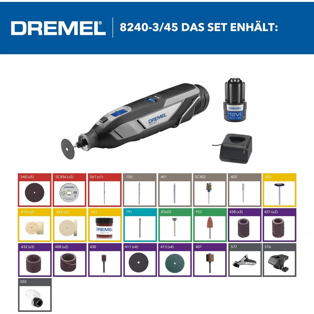DREMEL 8240-3/45 Akkus multifuncțional unealtă + 45 buc extensie set