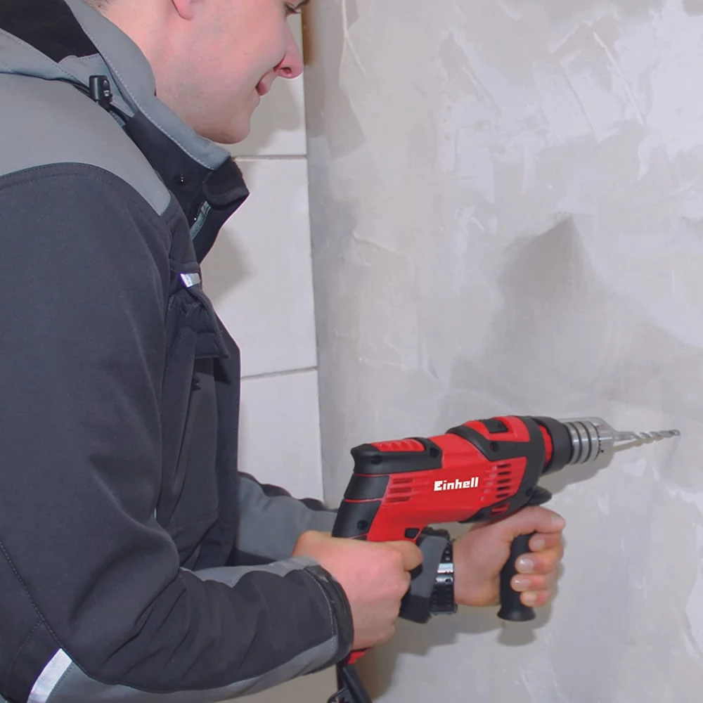 Mașina de găurit cu percuție Einhell TC-RH 800 4F este un ajutor puternic cu o putere de 800 de wați, care combină patru funcții de bază care sunt esențiale pentru lucrările de renovare: poate fi folosit pentru găurire, găurire cu ciocan și dăltuire (cu sau fără atașament de daltă). Dacă într-adevăr aveți nevoie de putere de penetrare, atunci numai burghiul cu ciocan vă poate ajuta, deoarece dispozitivul poate manipula cu ușurință chiar și materialele încăpățânate și greu de prelucrat, cum ar fi piatra sau betonul. Impulsurile de impact slăbesc piesa de prelucrat, iar ciocanul aproape că mestecă materialul cu mișcarea sa de tăiere rotativă. Puteți folosi burghiul cu percuție și pentru lucrări de demolare: este o soluție perfectă, de exemplu, pentru materiale dure - de ex. pentru spargerea betonului, cărămizii și pietrei. Max. Datorită rezistenței la impact de 2,6 jouli, burghiul se mișcă prin beton ca un cuțit prin unt: în acest max. Performanța de găurire de 26 mm ajută. Puteți comuta între funcțiile individuale folosind comutatorul de mod. Suprafețele mari Softgrip garantează întotdeauna o prindere sigură. Pentru a asigura ușurința în utilizare, mașina de găurit cu percuție este echipată cu un buton de comutare blocabil și o mandrină semi-automată SDS-Plus robustă. Siguranta este asigurata de electronica de control al vitezei care poate fi adaptata la natura lucrarii de efectuat si tipul de material si opritorul de adancime reglabil continuu. Opritorul pentru adâncimea găurii reglabil continuu este fabricat din plastic rezistent. Puteți cumpăra dispozitivul într-o carcasă practică E-Box Basic. Puteți stoca și transporta ulterior dispozitivul în el.