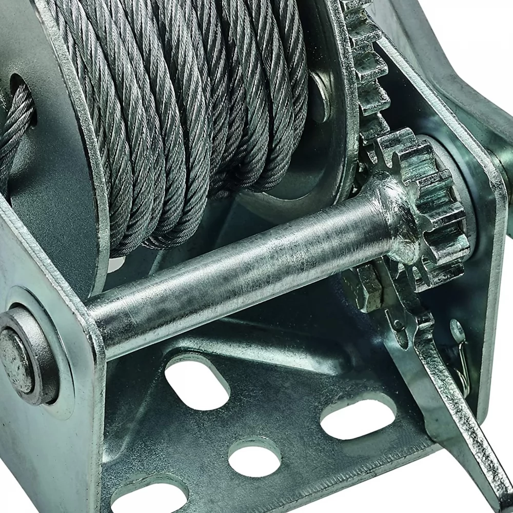 Capacitatea maximă de încărcare a troliului manual Einhell TC-WI 500 este de 500 de kilograme. Ambalajul din fabrică include și cablul de sârmă de 10 metri lungime, fără răsuciri (Ø 4,2 mm) și cârligul echipat cu o carabină de siguranță. Carabiniera de siguranță împiedică sarcina asigurată să alunece de pe cârlig. Cu ajutorul mecanismului cu clichet, puteți opri în siguranță frânghia și sarcina. Manivela este acoperită cu Softgrip, care garantează o prindere puternică și un lucru confortabil. Puteți fixa cu ușurință troliul folosind găurile de pe placă.