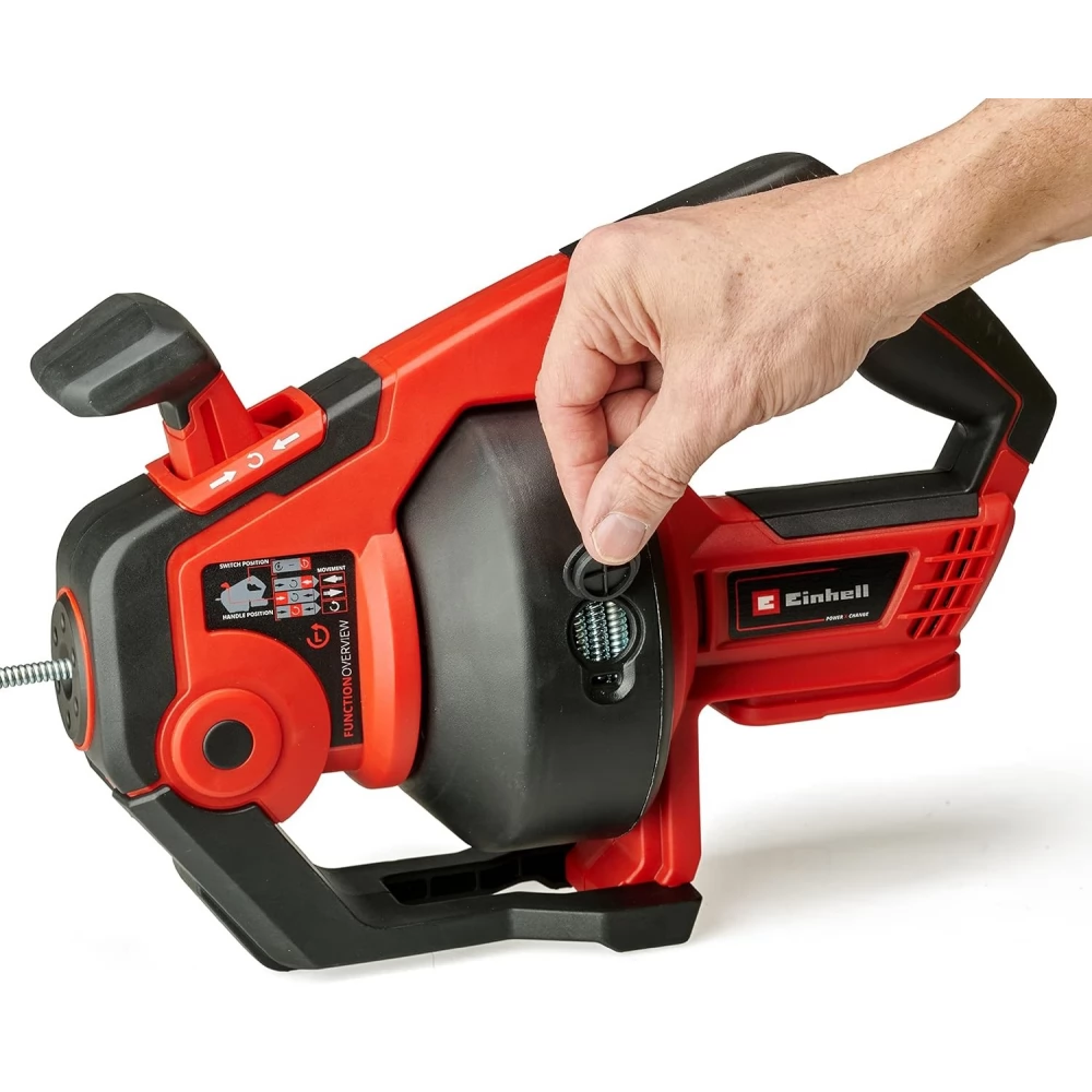 Cu aparatul de curățat țevi pentru baterii Einhell TE-DA 18/760 Li-Solo, puteți curăța țevile ușor și rapid. Curățătorul de țevi este membru al familiei de produse Power X-Change, astfel încât poate fi operat cu toate bateriile din seria de sisteme. Procesul de curățare este extrem de simplu datorită avansului și retragerii motorizate. Spirala galvanizata inoxidabila garanteaza durabilitate maxima. Spirala poate fi rotită atât în sensul acelor de ceasornic, cât și în sens invers acelor de ceasornic, așa că dacă se blochează, poate fi retrasă cu ușurință. Tamburul poate fi curățat simplu și convenabil prin orificiile de intrare și de evacuare. Cu mecanismul de fixare, chiar și cea mai încăpățânată murdărie poate fi îndepărtată cu ușurință de pe țevi. Datorită spiralei de 7 mm grosime, curățătorul de țevi fără fir poate fi folosit pentru țevi cu diametrul de 16-55 mm. Zona de lucru este iluminată cu LED-uri. Mânerul ergonomic și acoperit cu Softgrip asigură o manevrare ușoară. Ambalajul din fabrică nu include bateria și încărcătorul. Acestea le puteți cumpăra separat, de exemplu sub forma unui pachet practic de pornire.