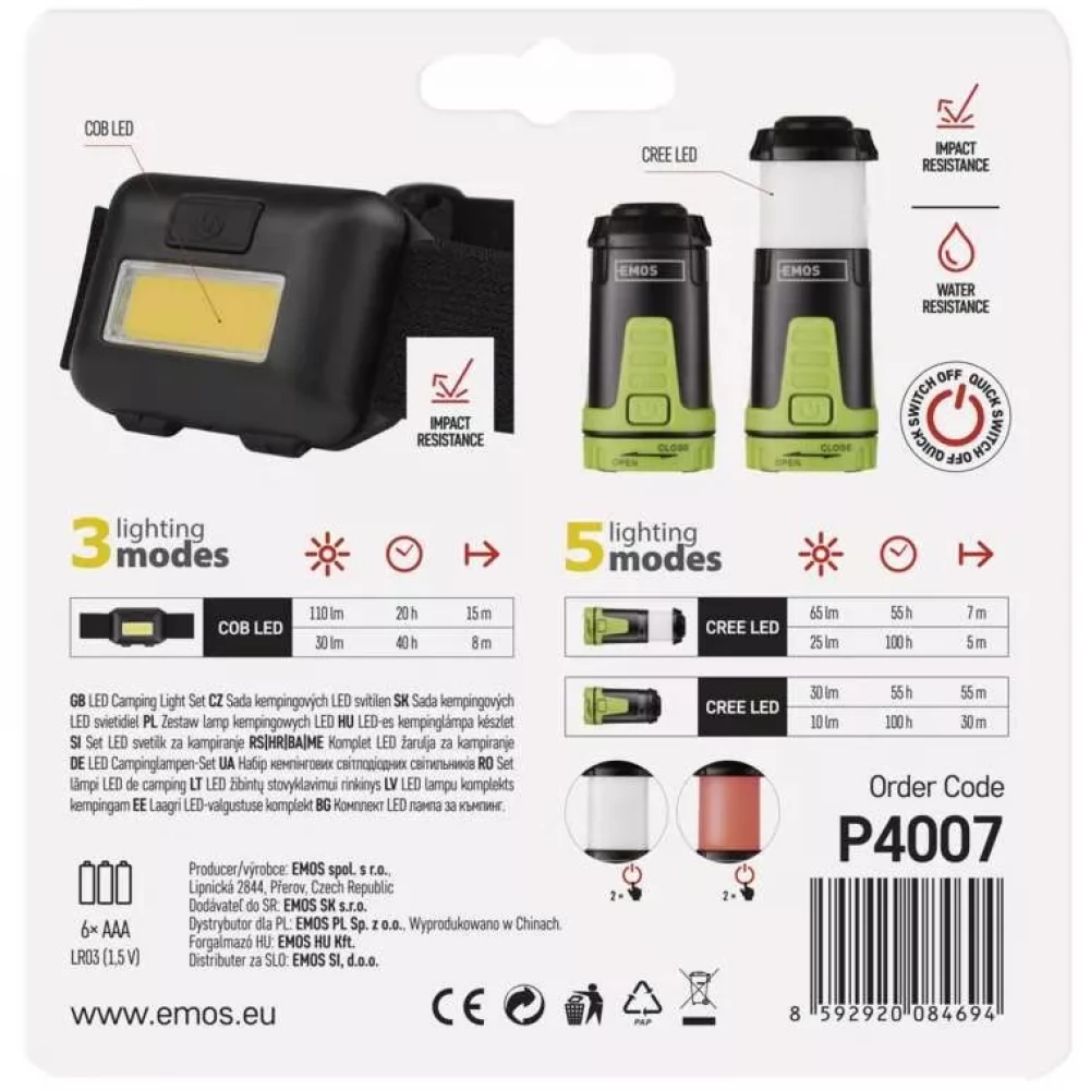 EMOS P4007 Lampă de cap set COB LED + mini felinar de camping