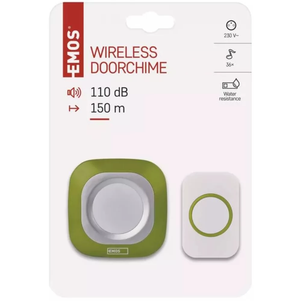 Nu este nevoie să cablați și să găuriți un perete. Butonul rezistent la apă și soneria comunică între ele la o distanță de până la 150 de metri. Clopotul este potrivit pentru utilizare în interior. Cu toate acestea, butonul de sonerie cu protecție IP44 este complet pregătit pentru condițiile meteorologice. Il putem aseza langa usa sau poarta. Sistemul are o așa-numită funcție de „auto-învățare” – butonul își poate genera propriul cod de asociere, pe care apoi soneria îl primește și stochează în memoria sa. Datorită funcției de „auto-învățare”, clopotele vecine nu interferează între ele.