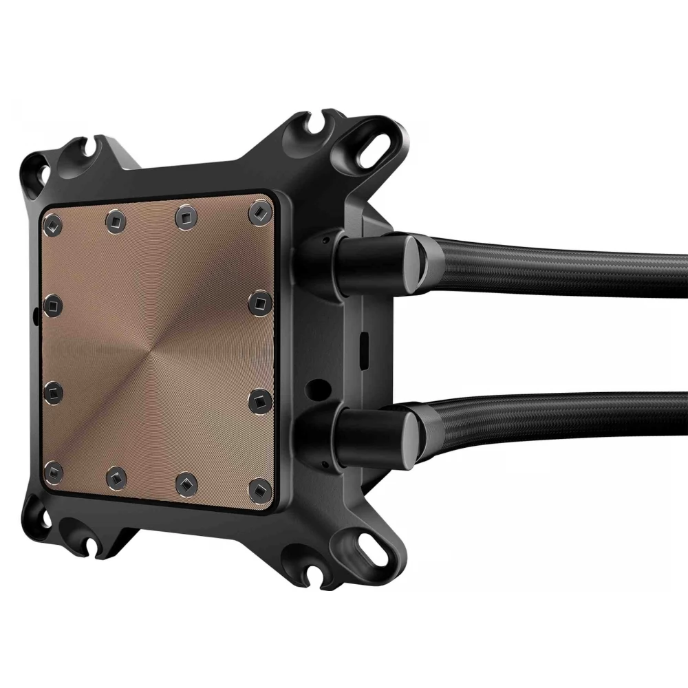 Răcire cu apă compactă, universală, cu 2 ventilatoare controlate PWM de 120 mm și bloc de răcire cu apă.