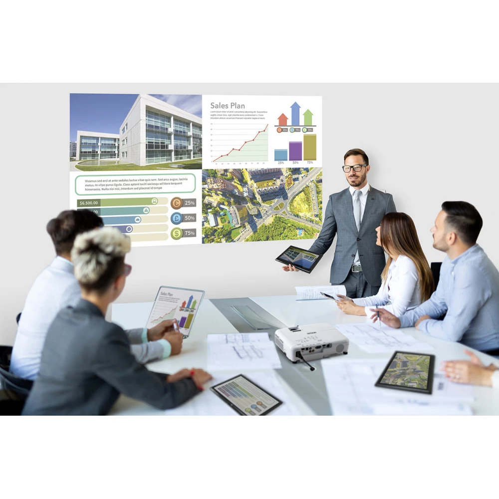 În timpul întâlnirilor, puteți proiecta continuu prezentări cu imagini clare pe suprafața de proiecție Full HD uriașă, scalabilă, cu rezoluție 1080p, pe care o puteți plasa aproape oriunde.