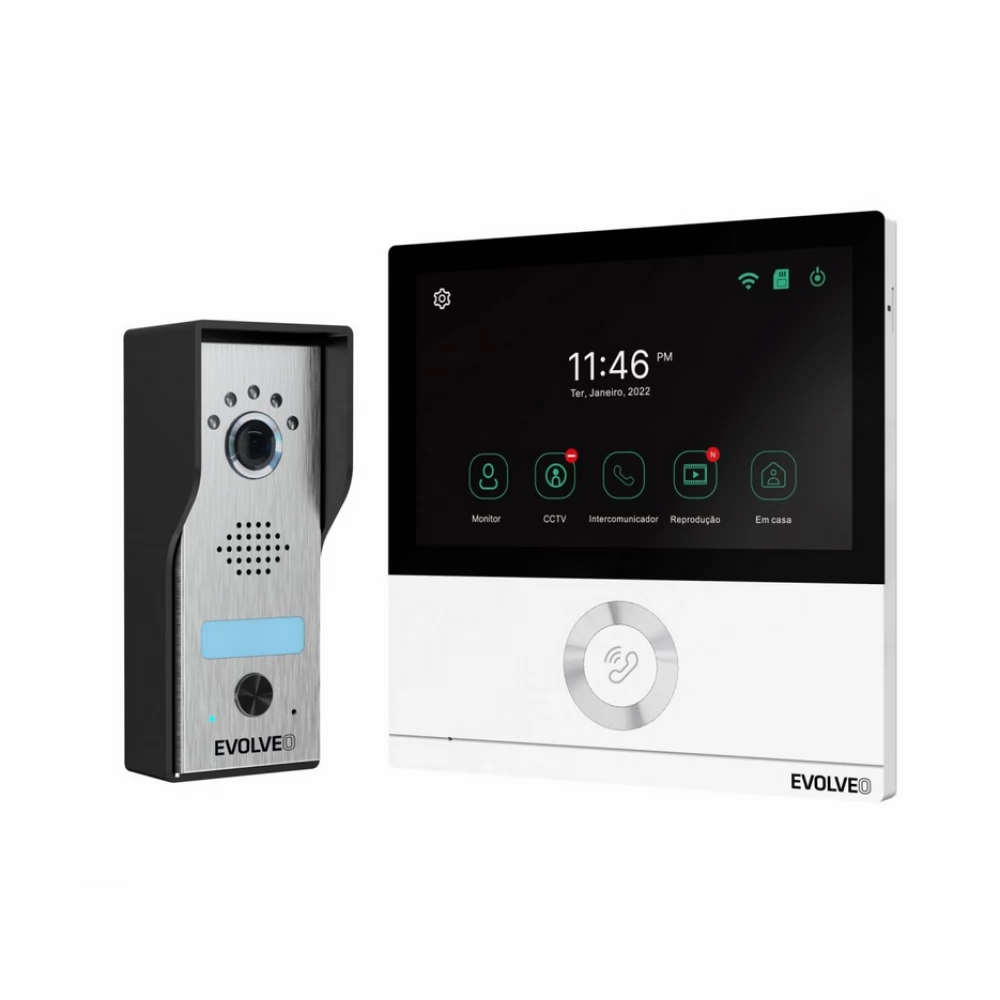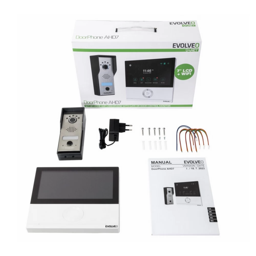 EVOLVEO DoorPhone AHD7 casnic WiFi videotelefon set kapu- sau ajtóvezérléssel alb cu un monitor