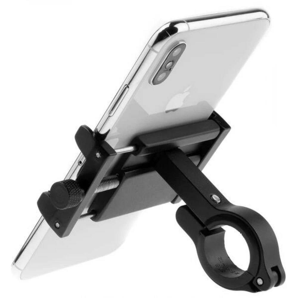 Suport de telefon din aluminiu care poate fi așezat pe o bicicletă.