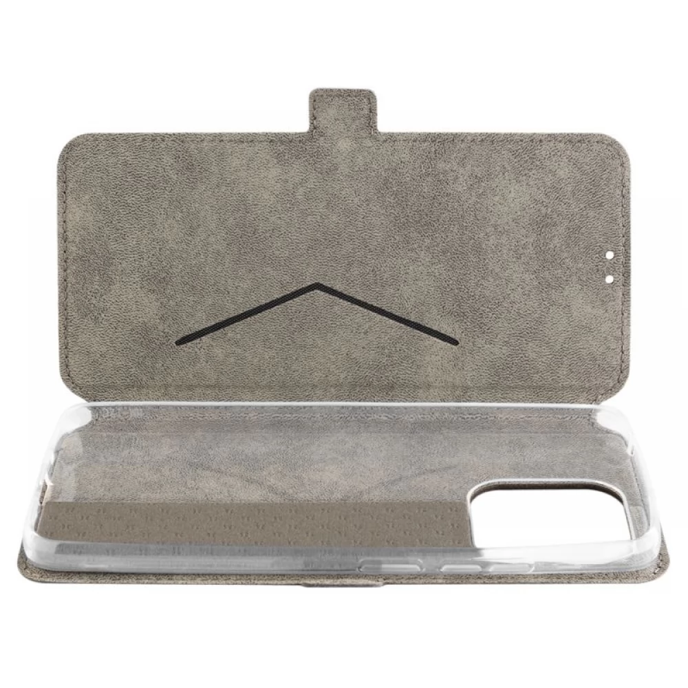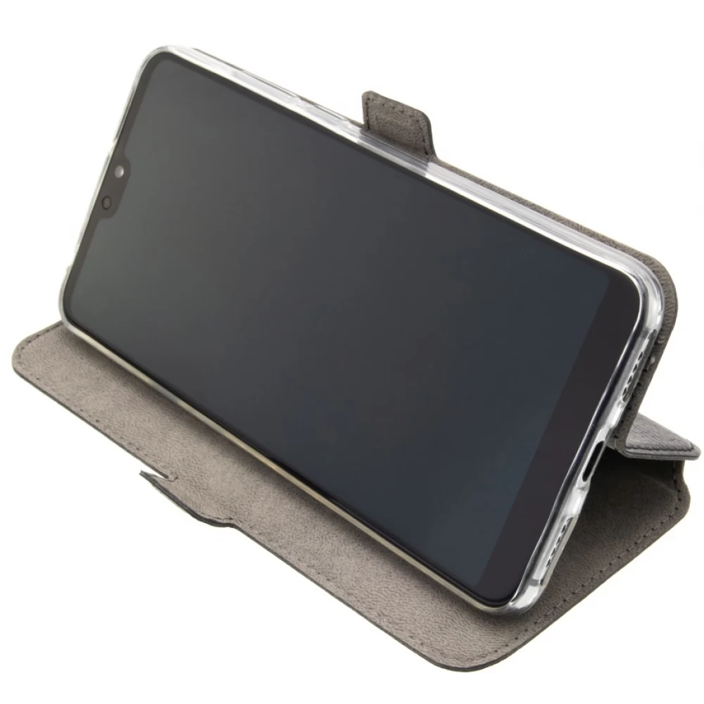 Partea frontală care se deschide a carcasei acoperă afișajul telefonului și este, de asemenea, asigurată cu un magnet. Există și un buzunar practic pentru un card bancar în interiorul piesei care poate fi deschisă. Partea interioară transparentă a carcasei TPU se potrivește corect modelului dat.
