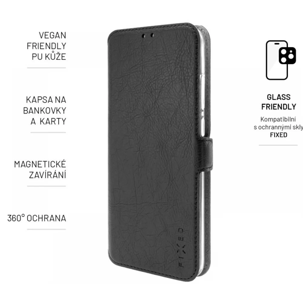 Husă FIXED Topic elegantă, subțire și practică, concepută individual pentru telefonul tău. Husa este realizata din piele PU de foarte buna calitate si rezistenta, cu cusaturi pe margini, ceea ce garanteaza protectia telefonului dumneavoastra impotriva deteriorarii.