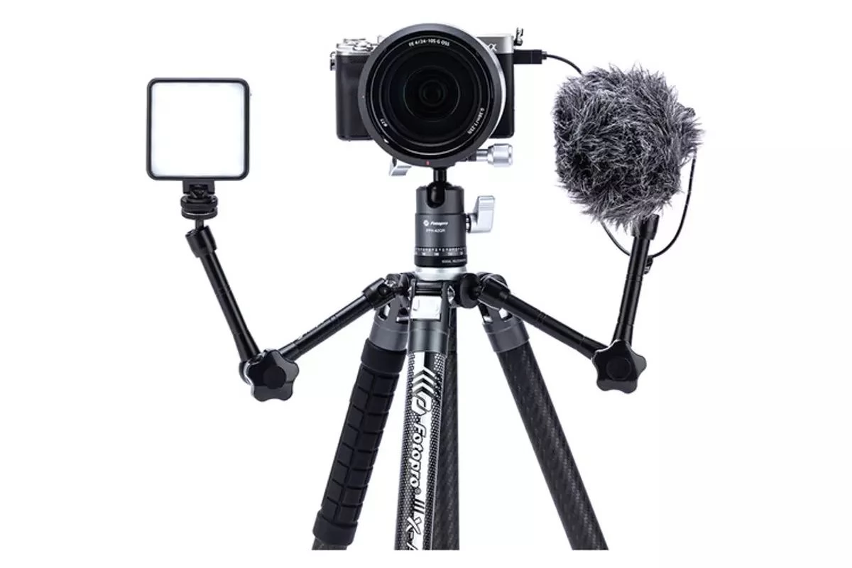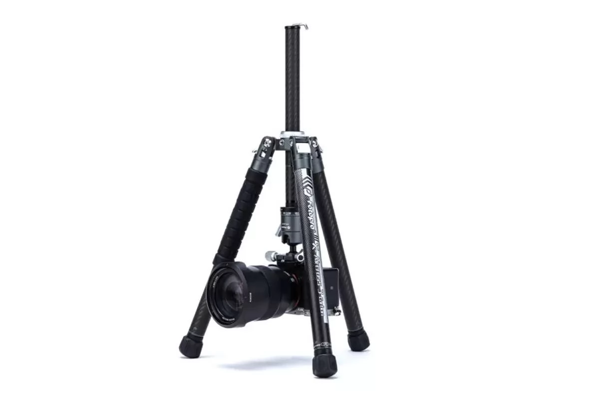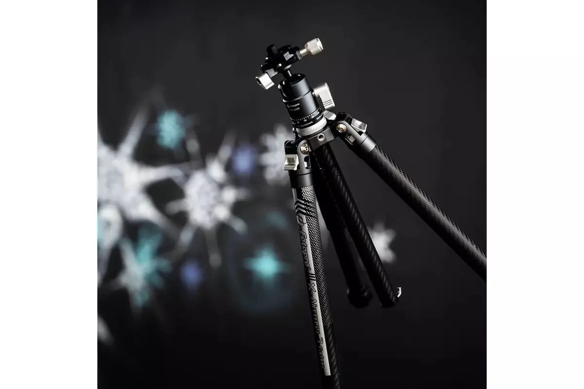 Un suport cu trei picioare, ale cărui picioare sunt realizate din material din fibră de carbon, poate fi pliat mic și ușor de transportat. Poate fi deschis la trei lățimi, cu un cap sferic rezistent și amortizare pe picior pentru o prindere confortabilă.