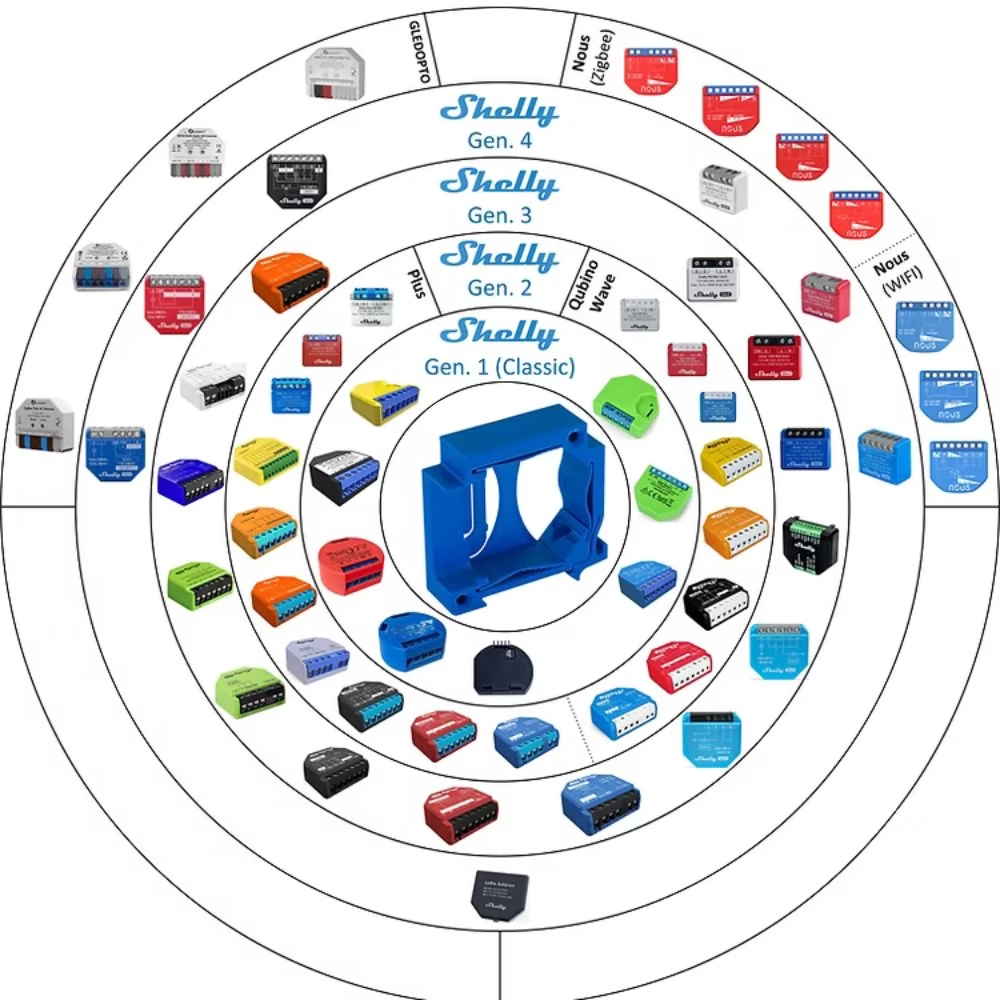 - Noul tip Flexi-Rail oferă compatibilitate universală: toate modulele Shelly retrofit sunt compatibile cu vechile versiuni Gen 1 (Shelly 1, 2.5, RGBW2, Dimmer) și noi (Gen2 Plus, Gen3, Wave, Gen4, Mini).