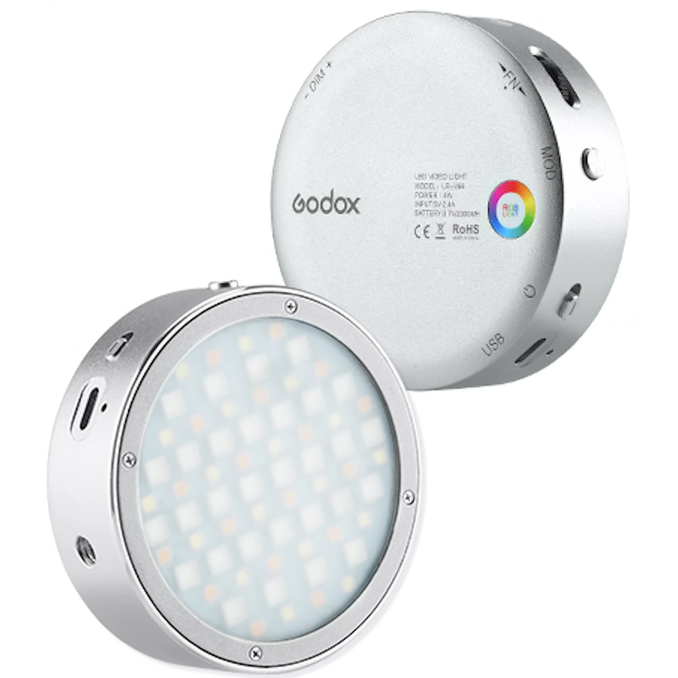 Setul de argint cu led argintiu cu cap de argint Round Silver Silver + AK-R1 Godox R1 RGB îți extinde foarte mult creativitatea pentru fotografia smartphone-ului. Fixați lampa de pe smartphone cu discurile de cârlig și buclă atașate și puteți începe! Kitul AK-R1 furnizat conține un set de instrumente cuprinzător de formă ușoară.
