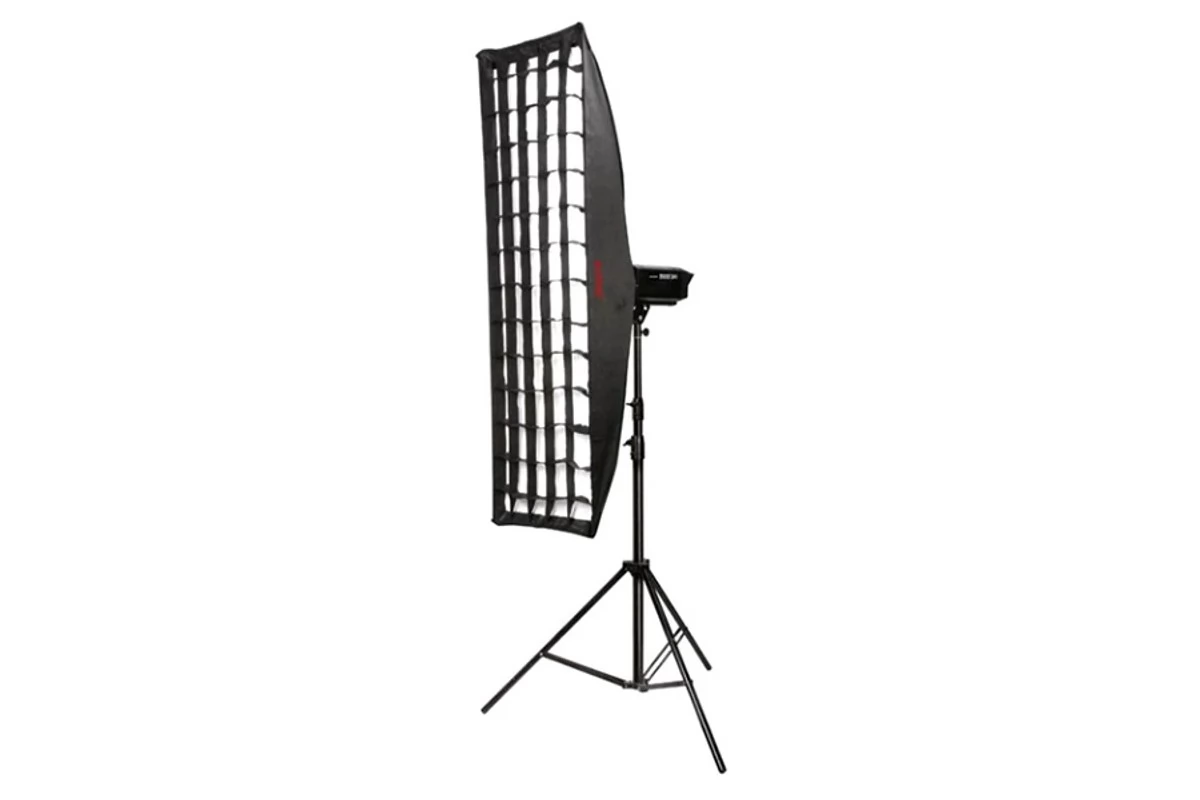 Grila ajută la controlul împrăștierii luminii, ceea ce poate fi un avantaj mare, în special în camerele mai mici. Cutia soft a softbox -ului rămâne, dar puteți controla lumina mult mai precis. Există un element de fixare velcro pe partea grilei a textilei, astfel încât acesta să poată fi ușor securizat pe softbox.