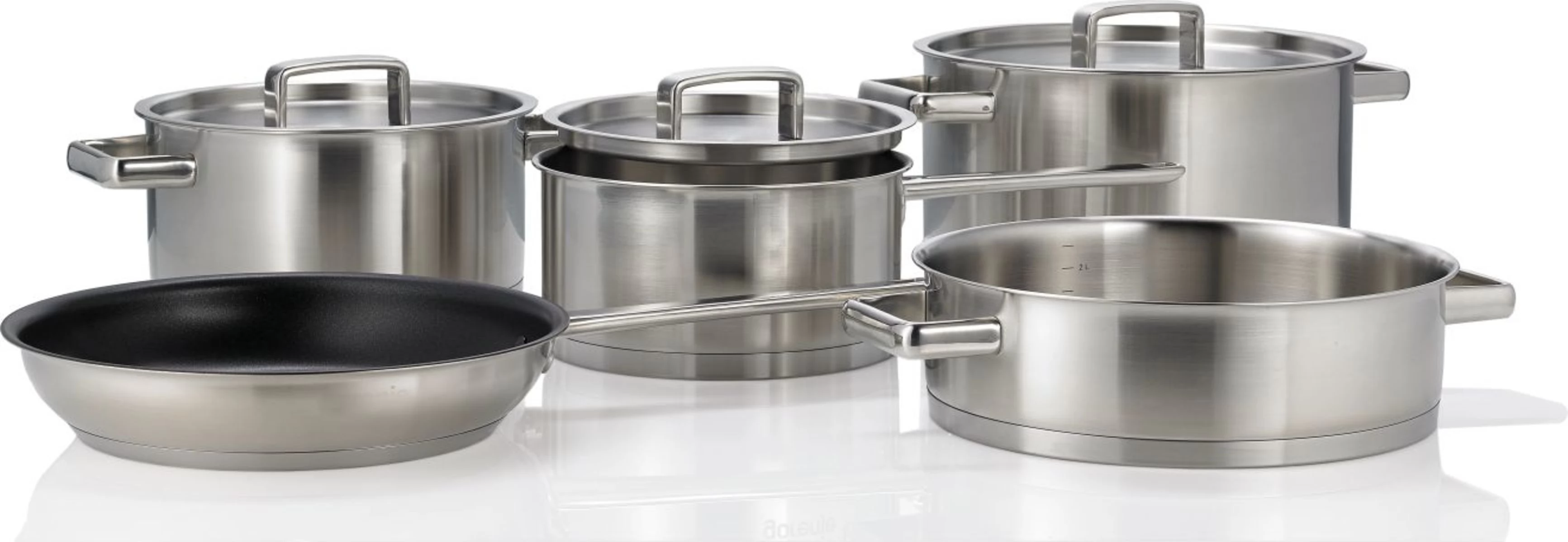 Setul include 5 tipuri diferite de oale de gătit: o oală cu mâner Ø 18 cm și o capacitate de 2,0 l; picioare Ø 20 cm si capacitate 3,0 l; picioare Ø 24 cm si capacitate 5,0 l; picior Ø 24 cm si capacitate 3,0 l si tava Ø 24 cm. Include trei huse.