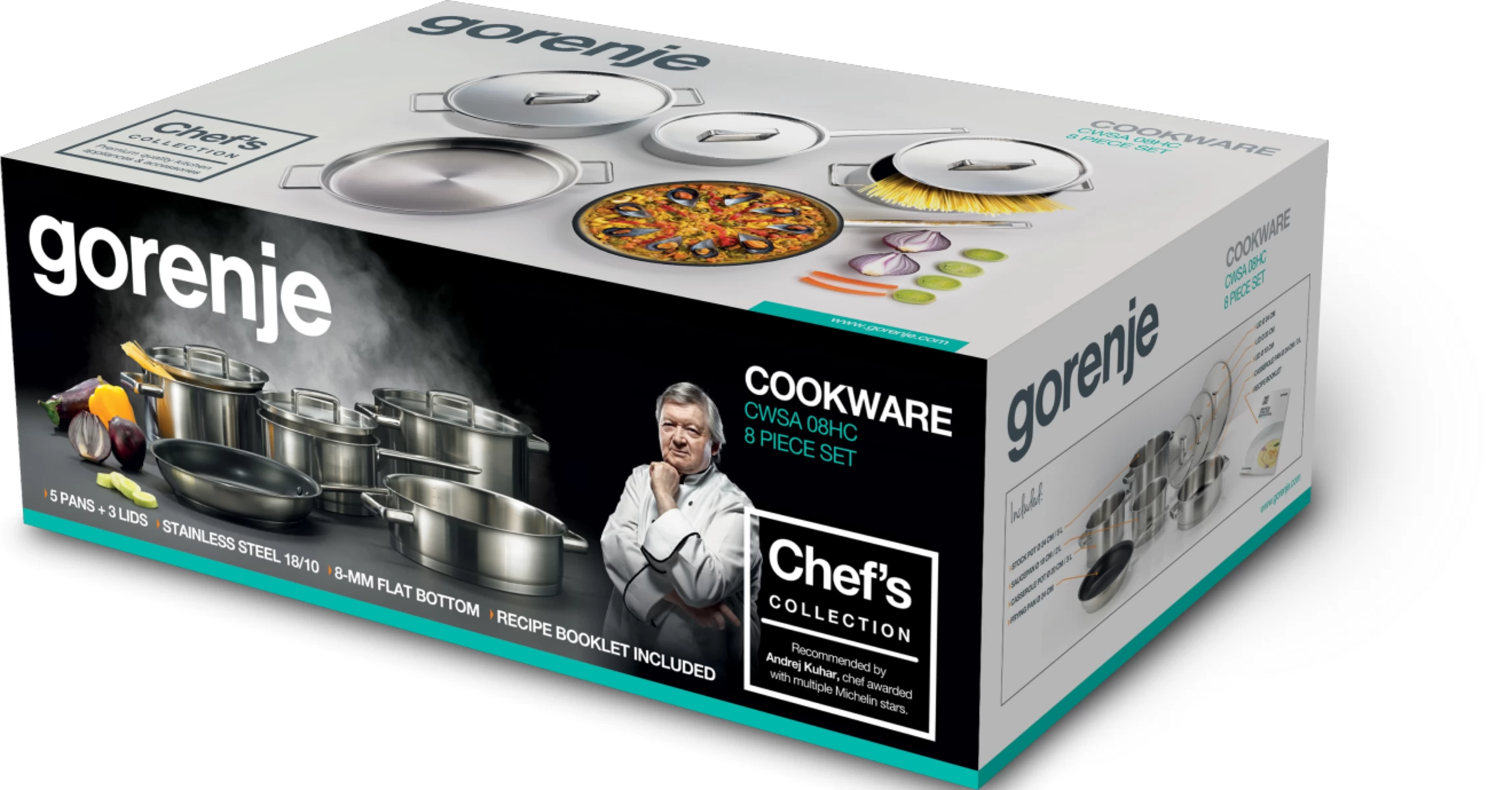 Vasele de gătit de înaltă calitate fac parte din colecția exclusivă Gorenje, potrivită atât pentru începători, cât și pentru profesioniști. Colecția Chef’s are performanțe remarcabile, materiale durabile și un aspect elegant.