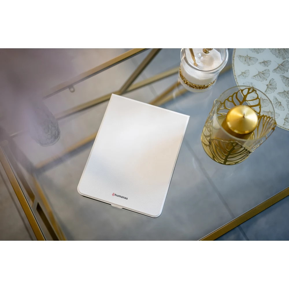 Oglinda de machiaj Humanas HS-ML02 este o garanție a luminii perfecte, care este necesară la aplicarea machiajului sau a îngrijirii zilnice. Acum vă puteți bucura de reflexii luminoase și clare oriunde v-ați afla. Diodele LED ascunse sub materialul lăptos asigură o iluminare uniformă și delicată feței dumneavoastră în toate situațiile.