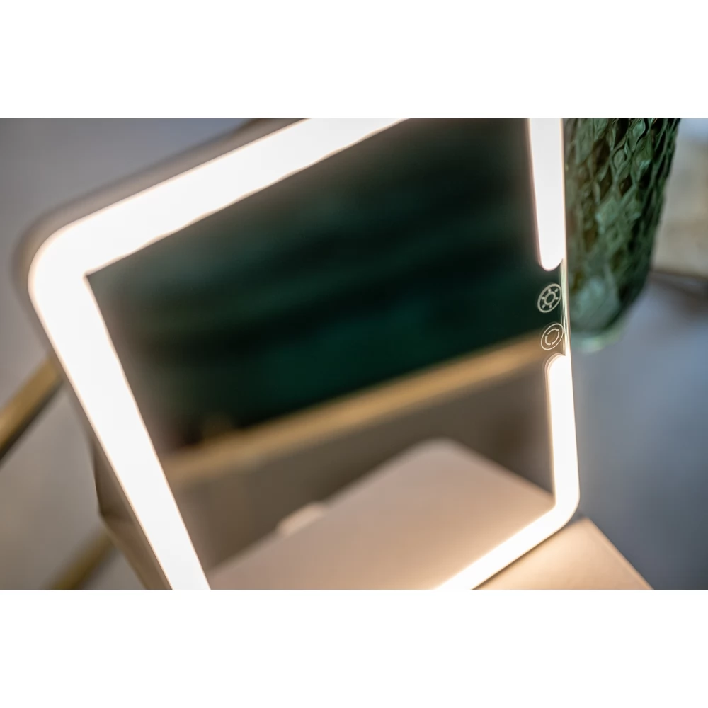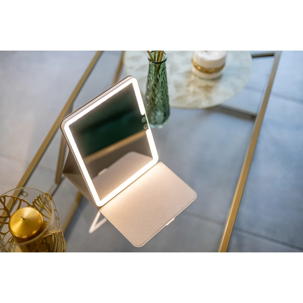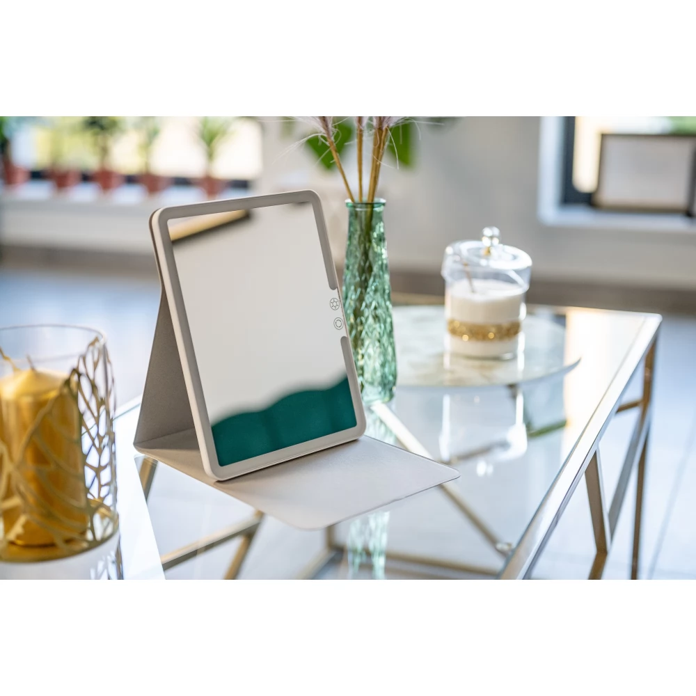 - O oglindă de machiaj ale cărei dimensiuni (25 x 19,1 cm) seamănă cu o tabletă