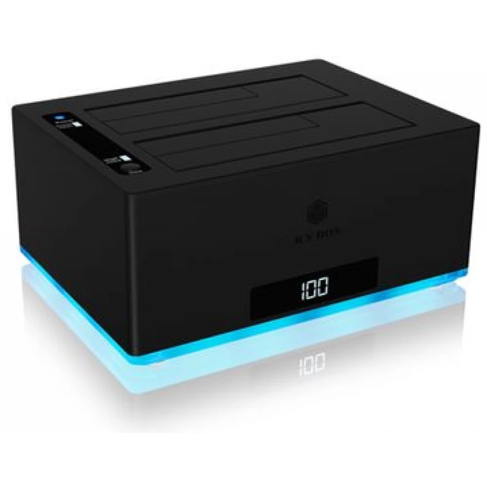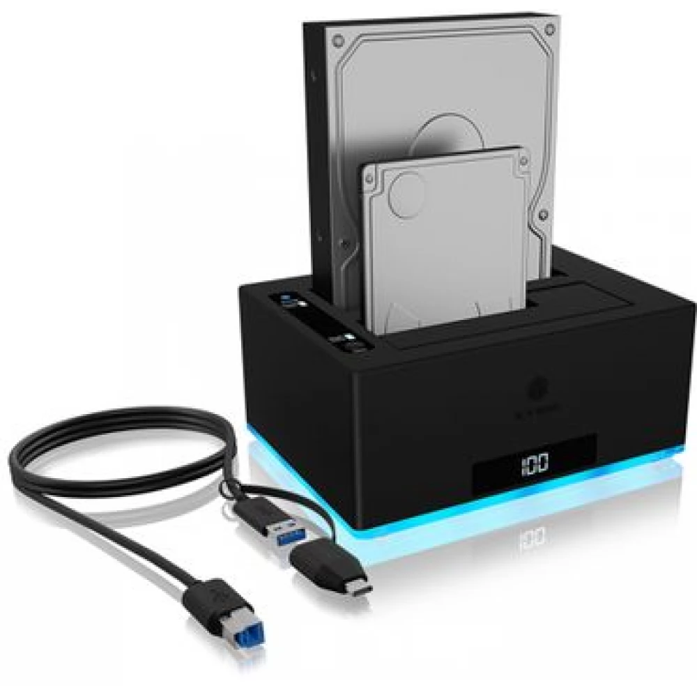 IB-127CL-U3 Stație de andocare 2x SATA 2.5-3.5" HDD/SSD USB-A-C 3.0 în negru, cu funcție de clonare, afișaj LED.