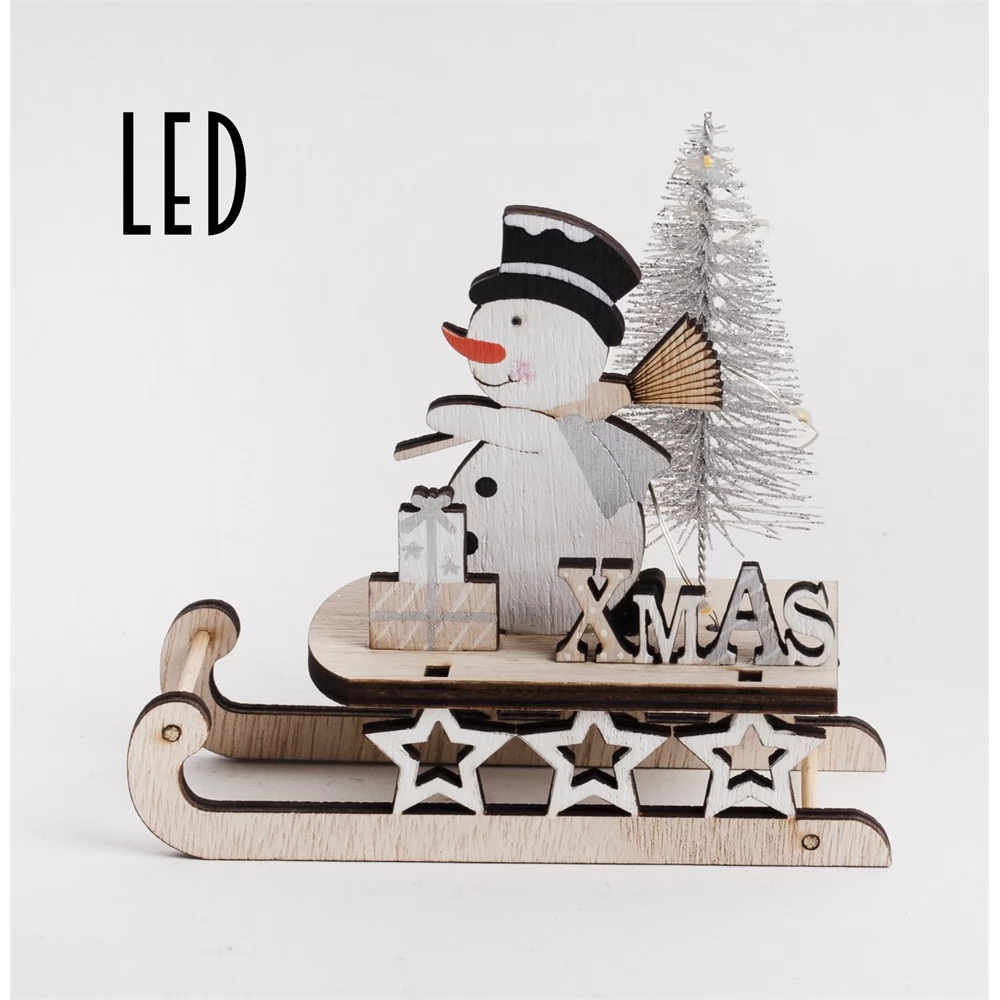 Omul de zăpadă de sanie din lemn + Crăciunul LED