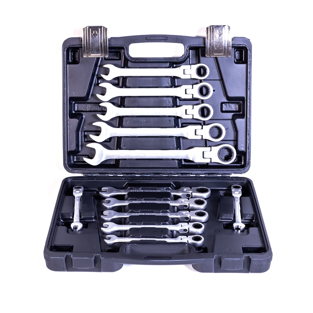 Set de chei combinate cu clichet articulat, de înaltă calitate, din 12 piese, conceput pentru uz casnic și pentru uz industrial mic.