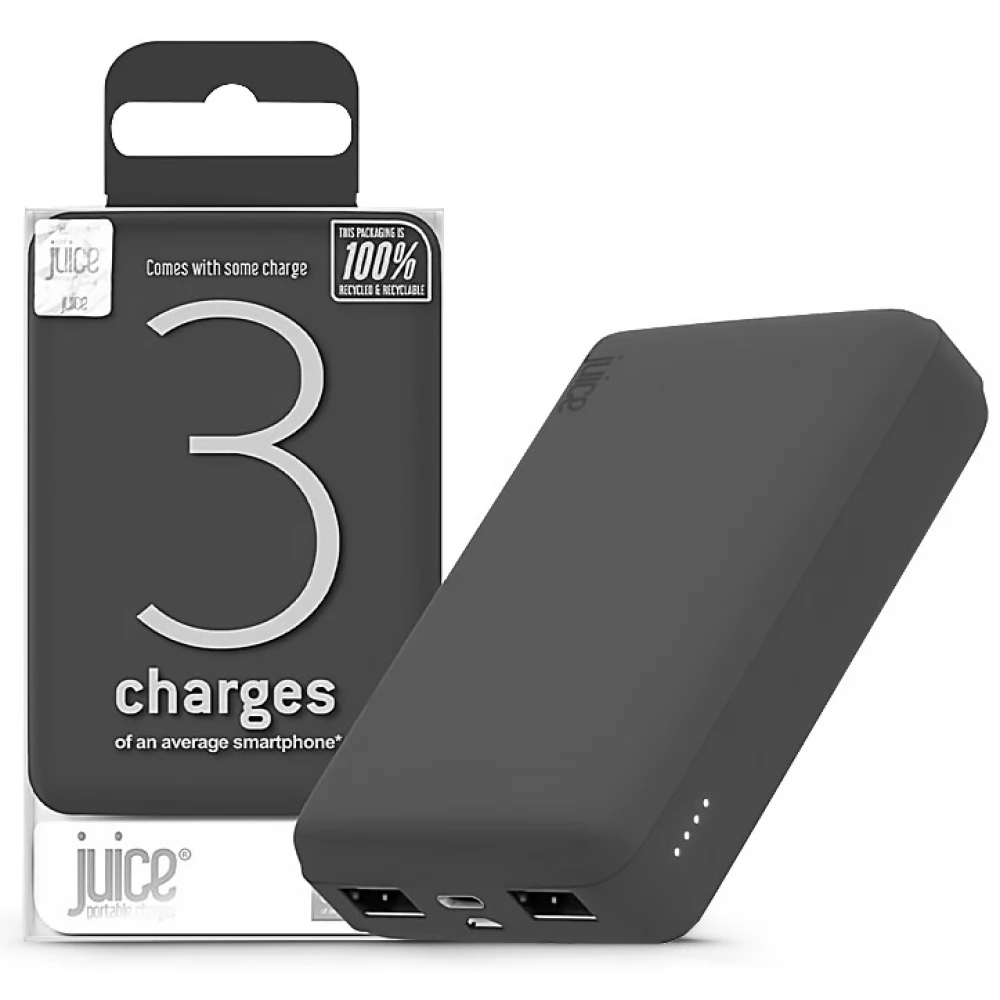 - Juice 3 încarcă smartphone-urile medii de la 0-50% baterie în doar 50 de minute, iar un smartphone mediu poate dura trei încărcări complete.