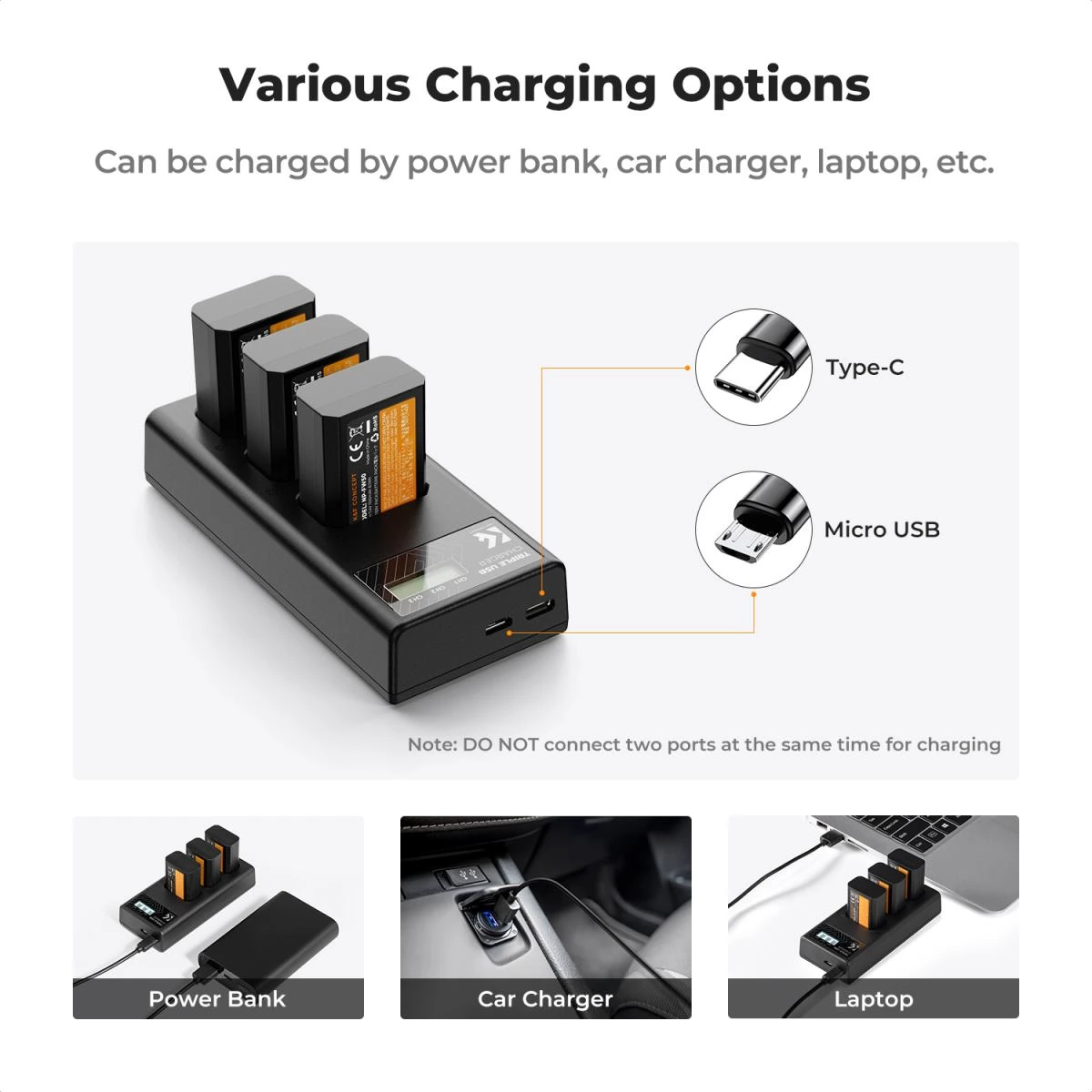 K-F CONCEPT BC-TRW Tripla acumulator încărcător USB-C + 3 buc FW50 acumulator 1100mAh