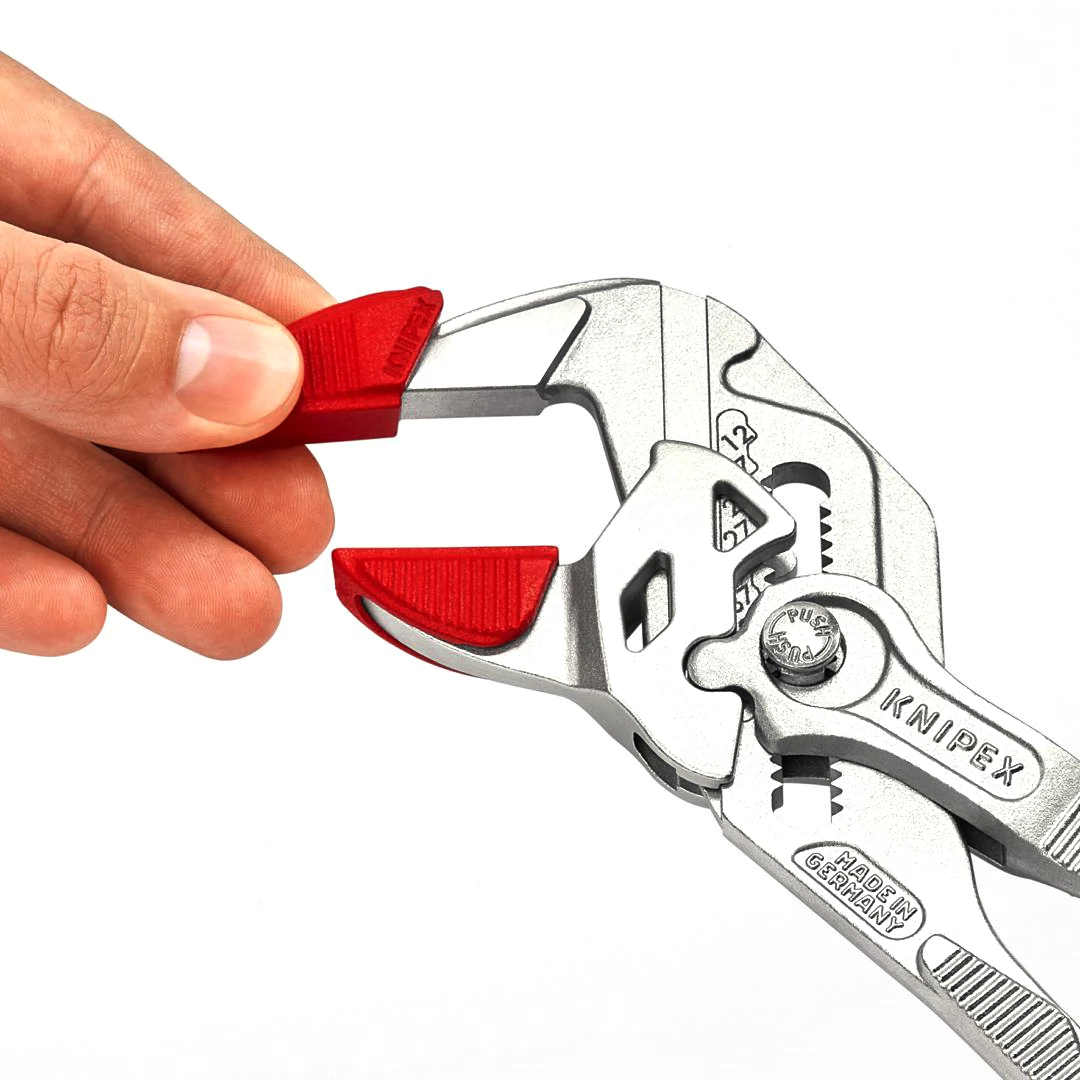 3 perechi de fălci din plastic pentru toate modelele 86 XX 250 mm. Alegerea perfectă pentru fitingurile de designer și alte materiale extrem de sensibile datorită suprafețelor moi și netede de prindere. Permite cromarea în cazul în care fălcile cheii sunt deteriorate din cauza utilizării necorespunzătoare sau accidentale. Ușor de atașat manual și atașare fiabilă la fălcile de prindere cu un cârlig intern.