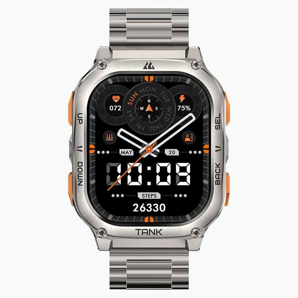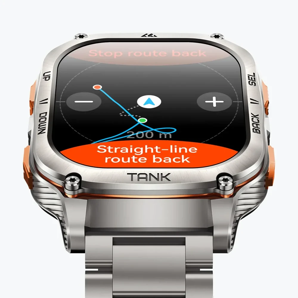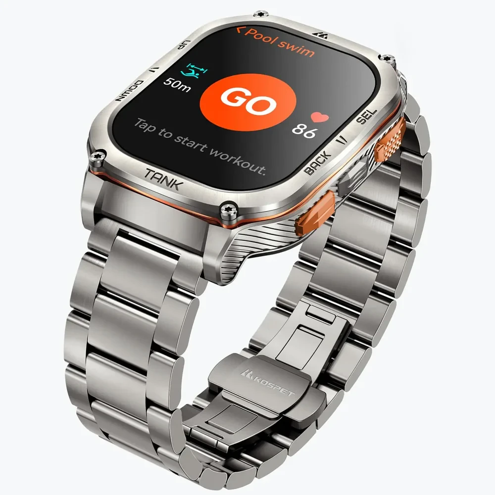 Ceasul inteligent KOSPET TANK M3 Ultra satisface toate nevoile in materie de tehnologie si design. Corpul integral din metal, din oțel inoxidabil este completat de un afișaj AMOLED de 1,96 inchi (410 × 502) cu o luminozitate maximă de 1000 nit și protejat de Corning Gorilla Glass 3.