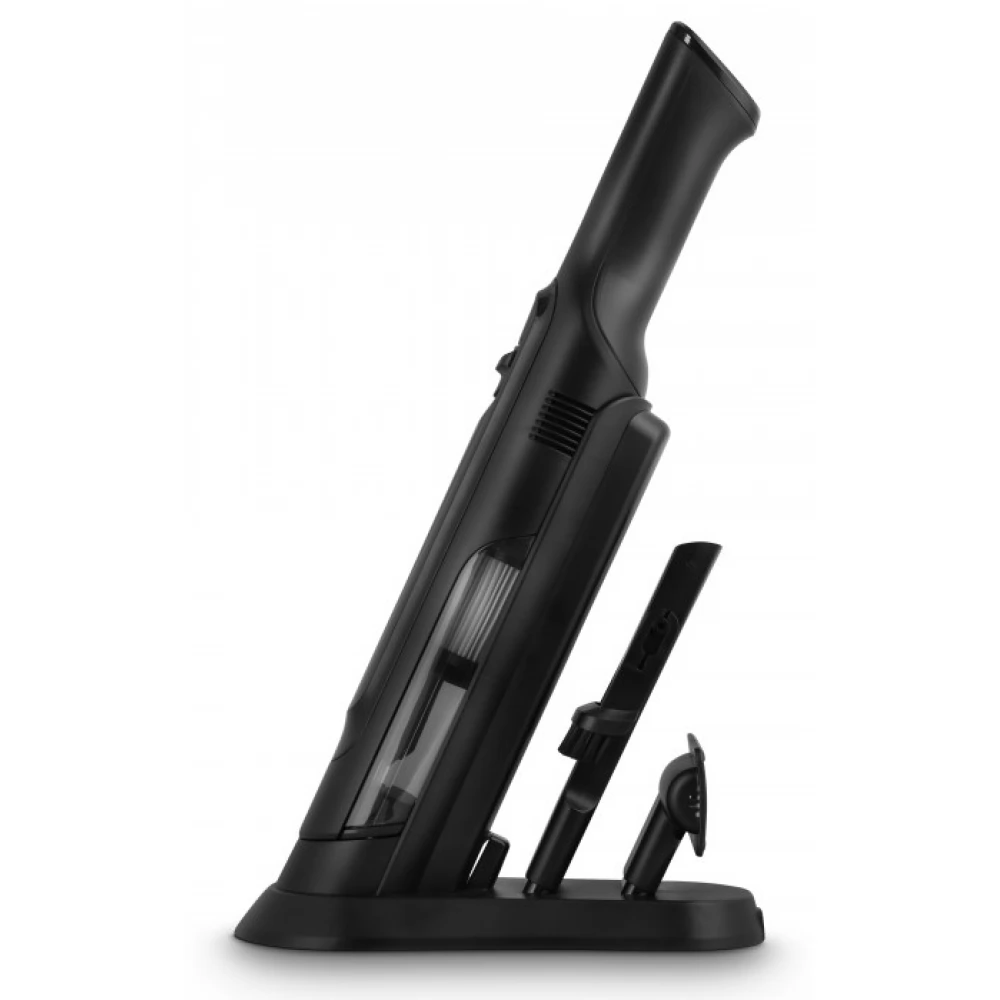 Aspiratorul de mână are un finisaj premium negru mat, elemente strălucitoare și un design structural ușor și un rezervor de colectare montat deasupra, care nu împiedică curățarea spațiilor înguste.