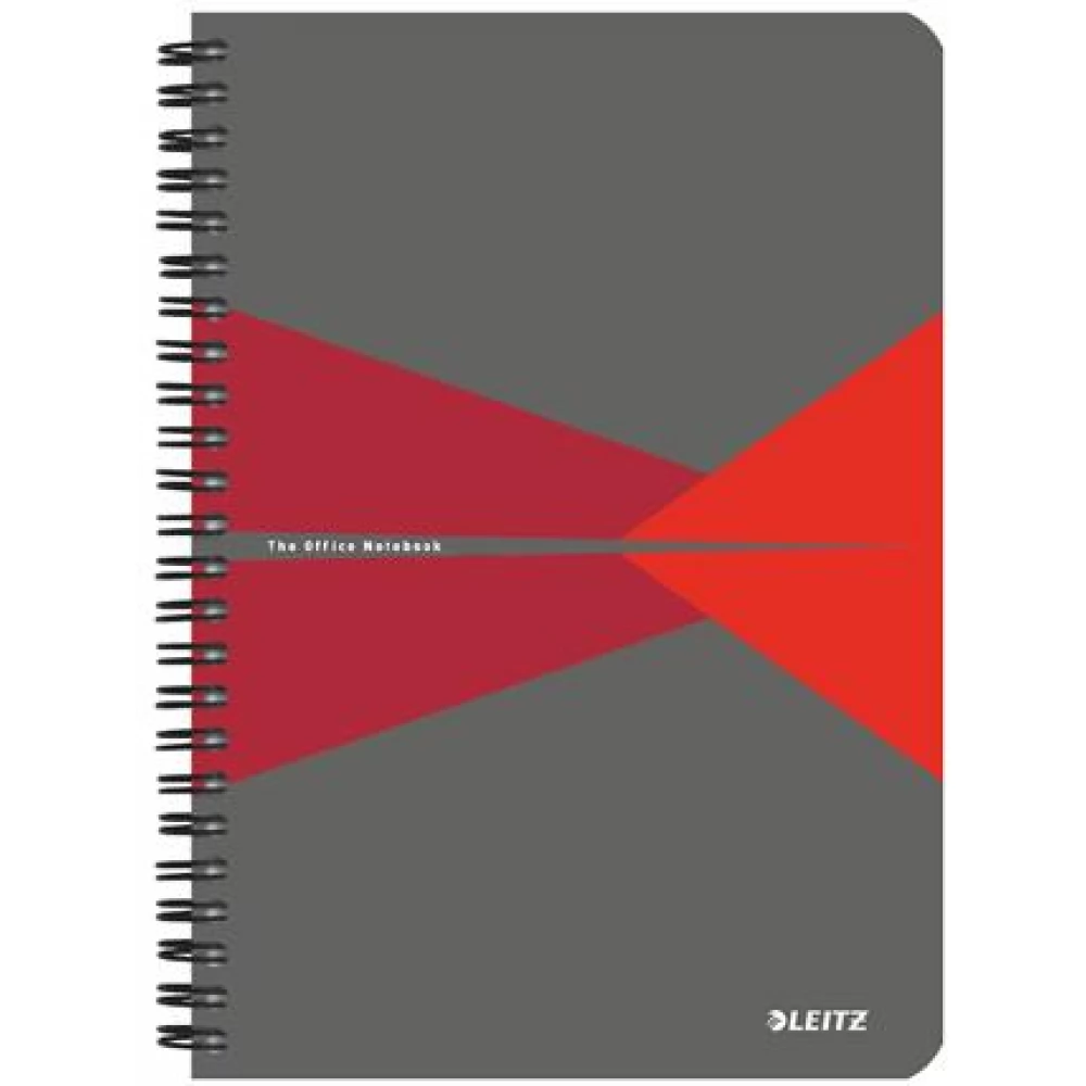 LEITZ Office caiet cu spirale A5 cu pătrăţele 90 lap PP acoperi gri-roșu