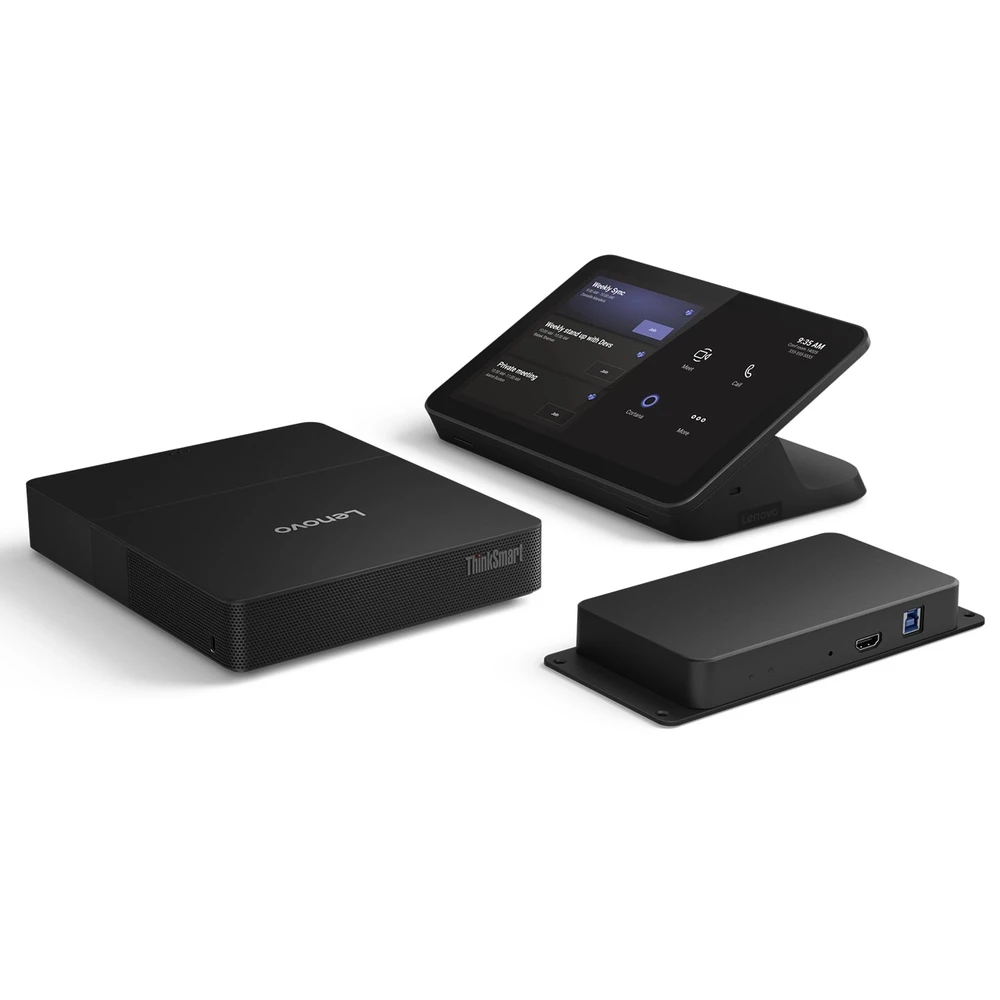 Un pachet care conține unitatea centrală ThinkSmart® Core Gen 2 și Lenovo® IP Controller pentru controlul sistemelor de videoconferință bazate pe Microsoft Team Rooms.
