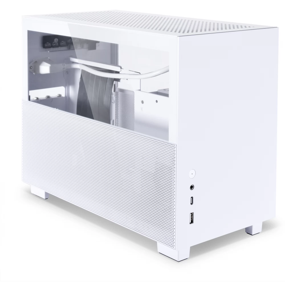 Q58 vine cu un flux de aer excelent și un interior spectaculos. Realizată din aluminiu, sticlă călită și oțel, carcasa Mini-ITX este disponibilă în două culori.
