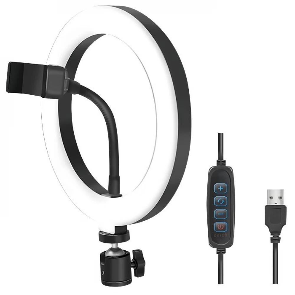 Cerc cu LED negru de 20 cm pentru smartphone.